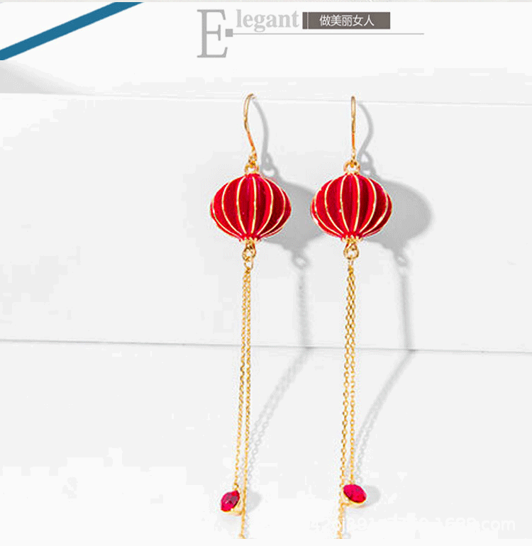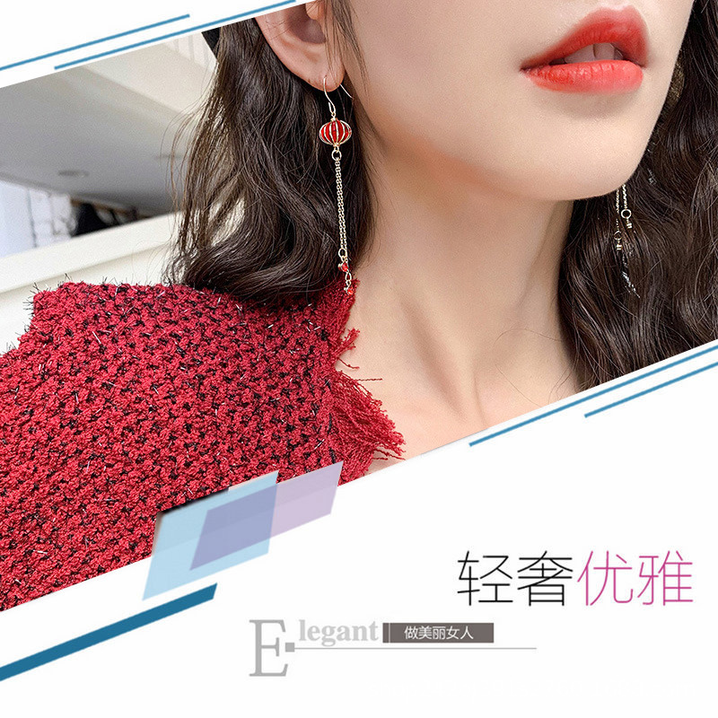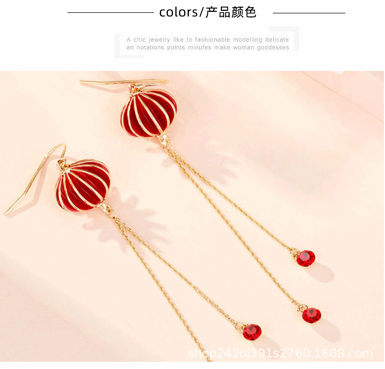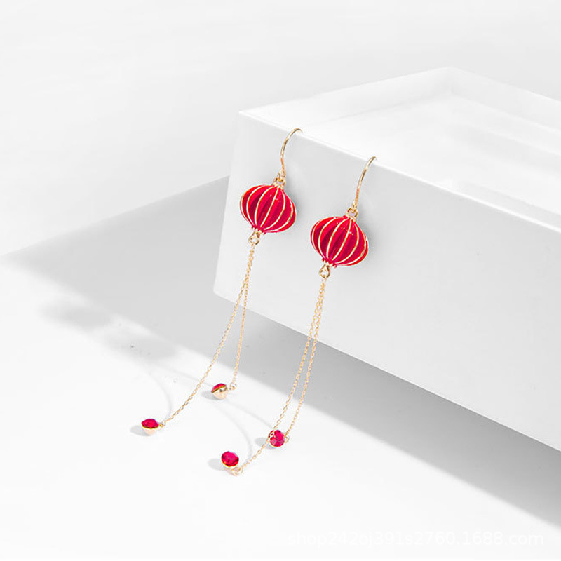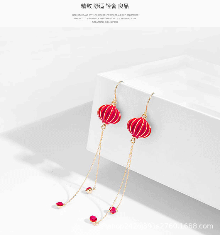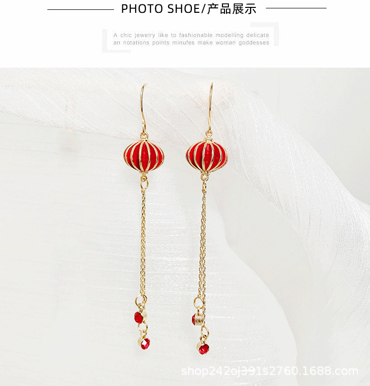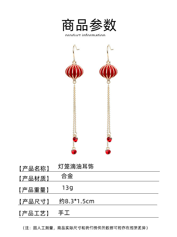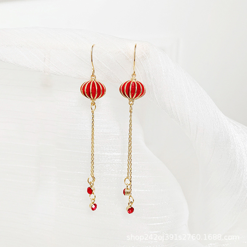 2023年新耳环女中国风灯笼滴油潮红色耳坠时尚ins设计感新娘耳饰