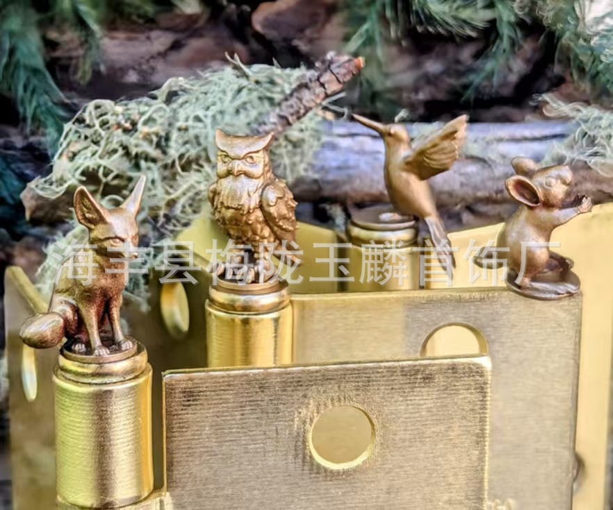 跨境新品合页上的微景观仿真动物小摆件黄铜工艺品摆件家居摆件