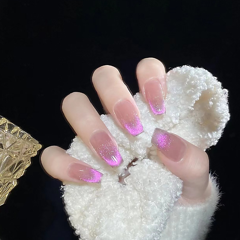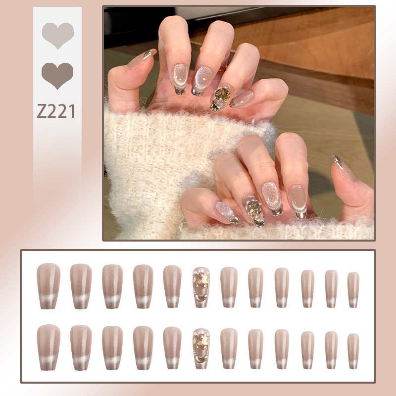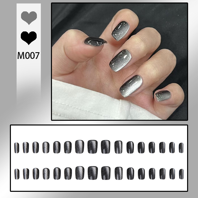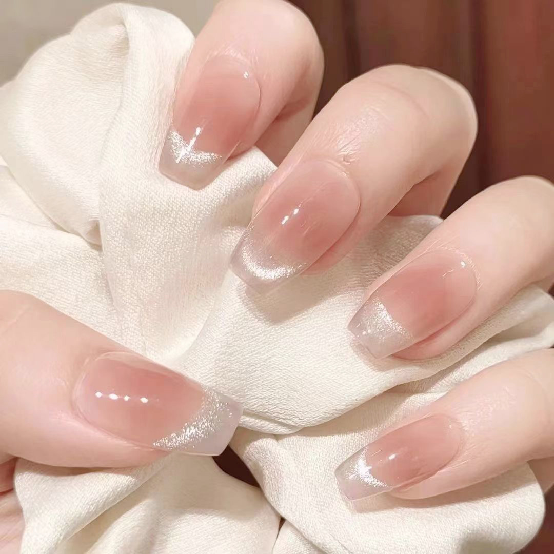 爆款穿戴甲冰透梦幻蓝色法式猫眼动感手工假指甲穿戴美甲成品甲片