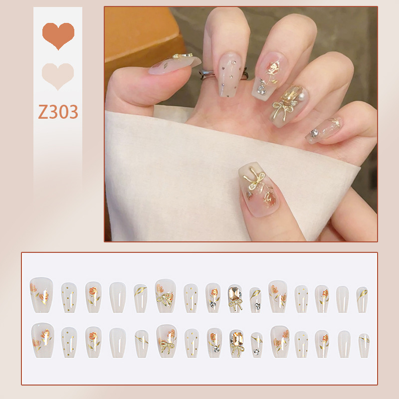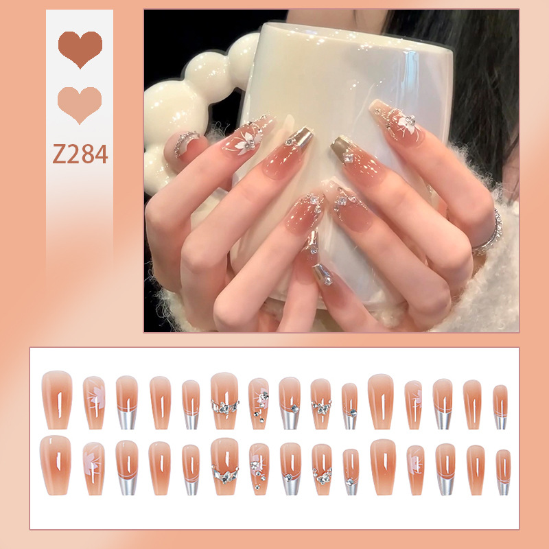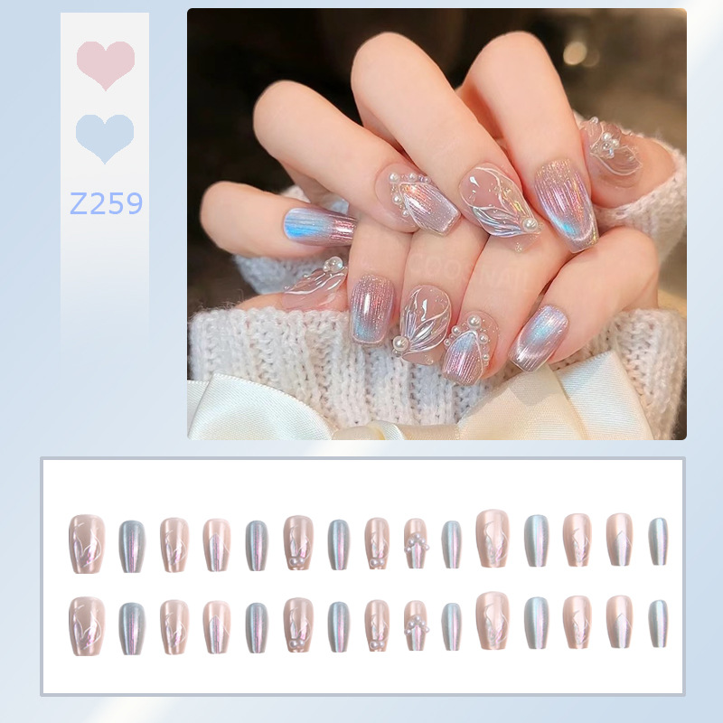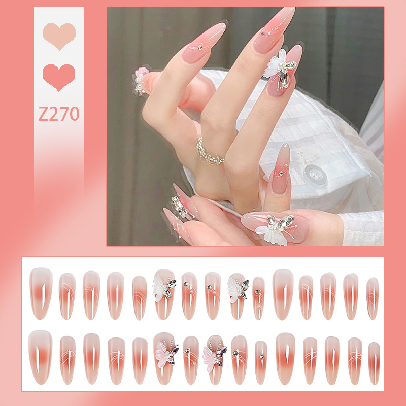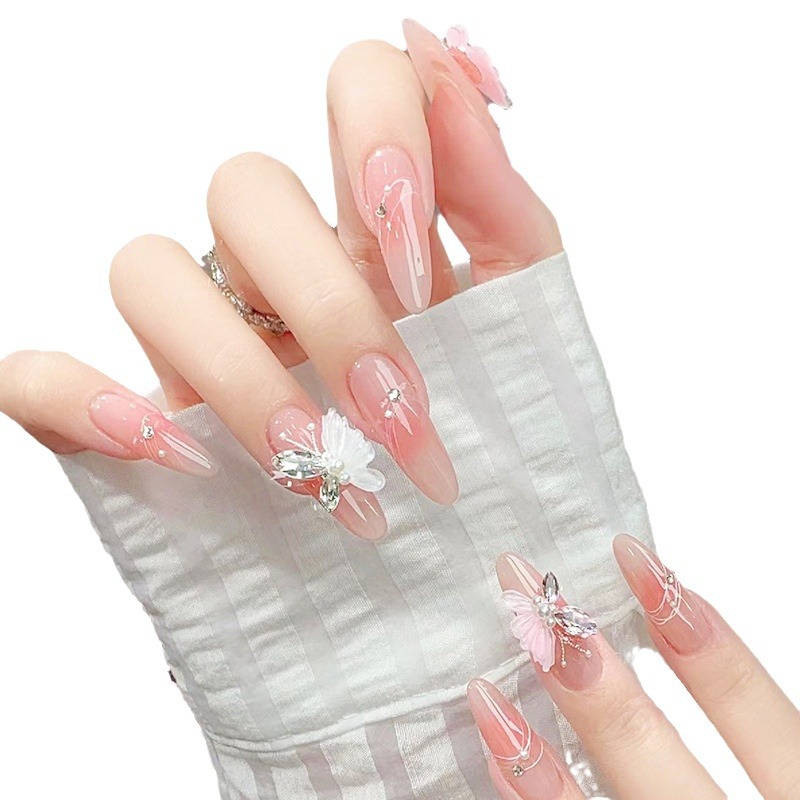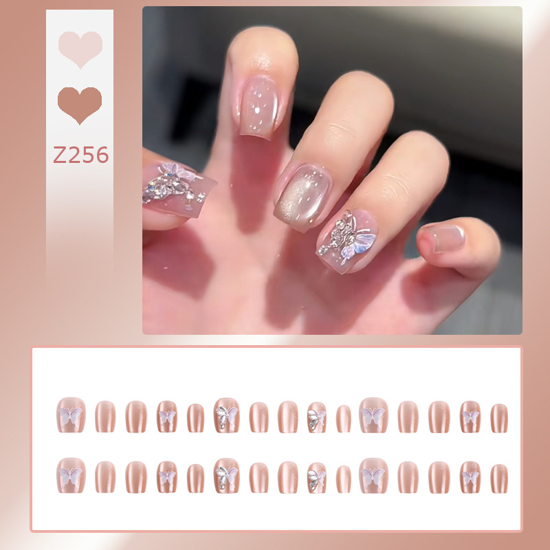 穿戴甲高级感冰封蝴蝶指甲贴可爱清透美甲腮红穿戴甲片假指甲批发