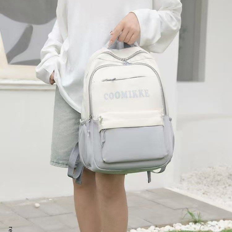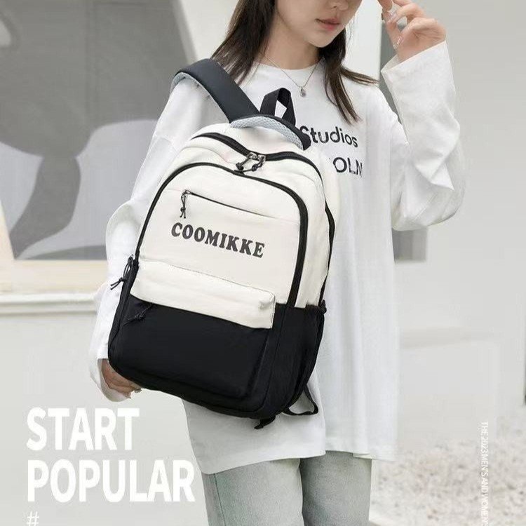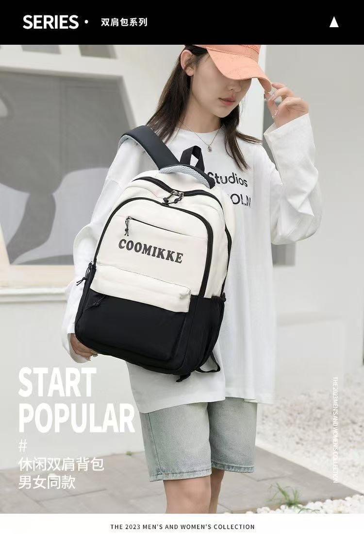 2025新款学生书包简约双肩包时尚休闲轻便拉链尼龙布校园背包