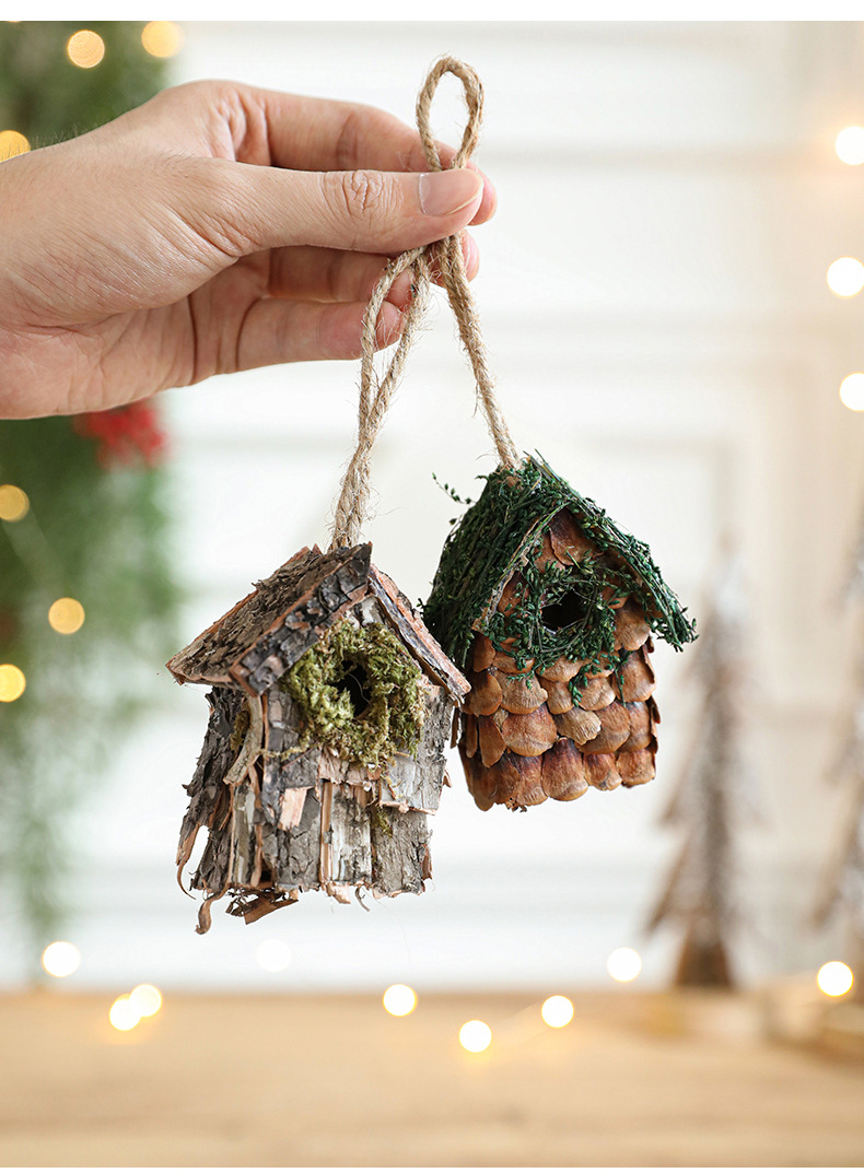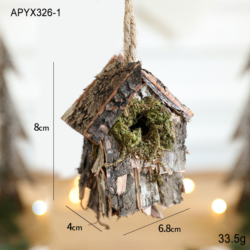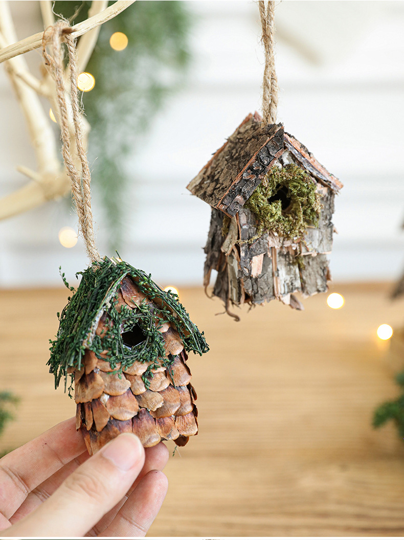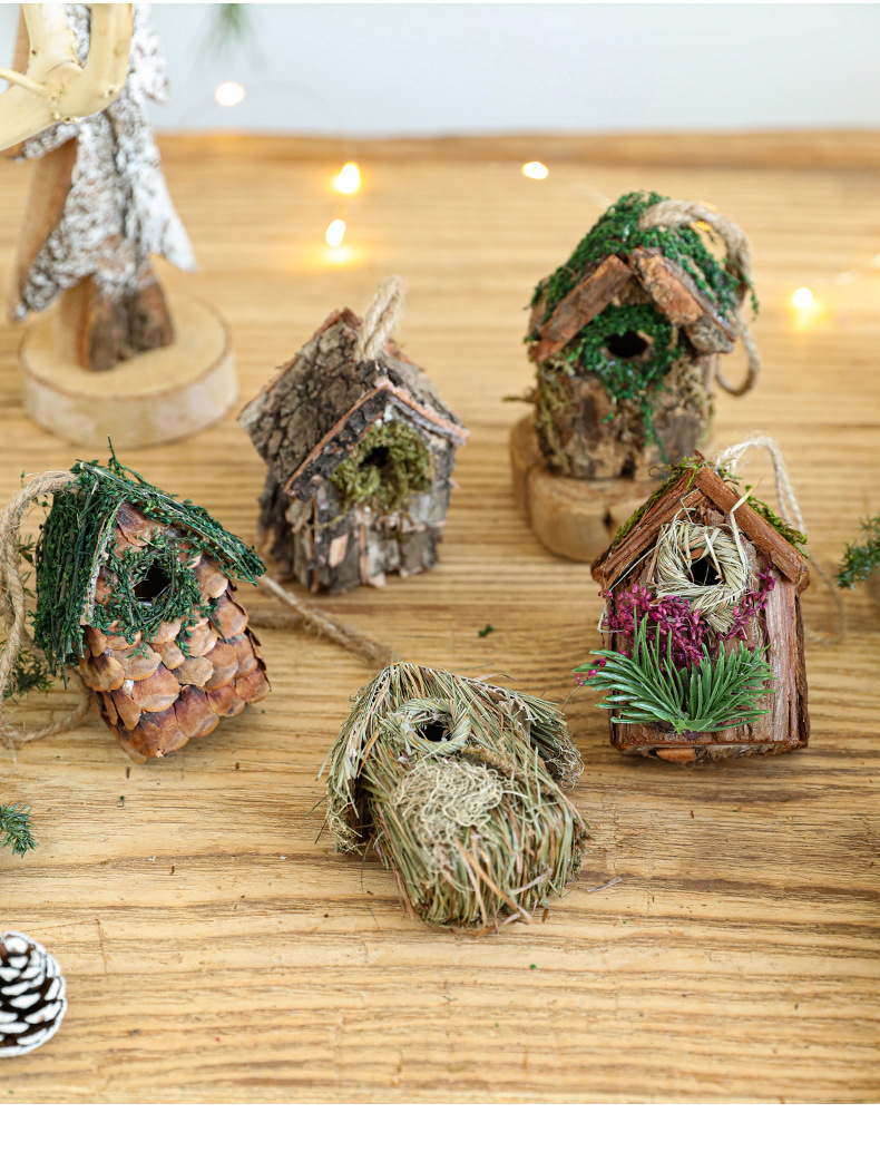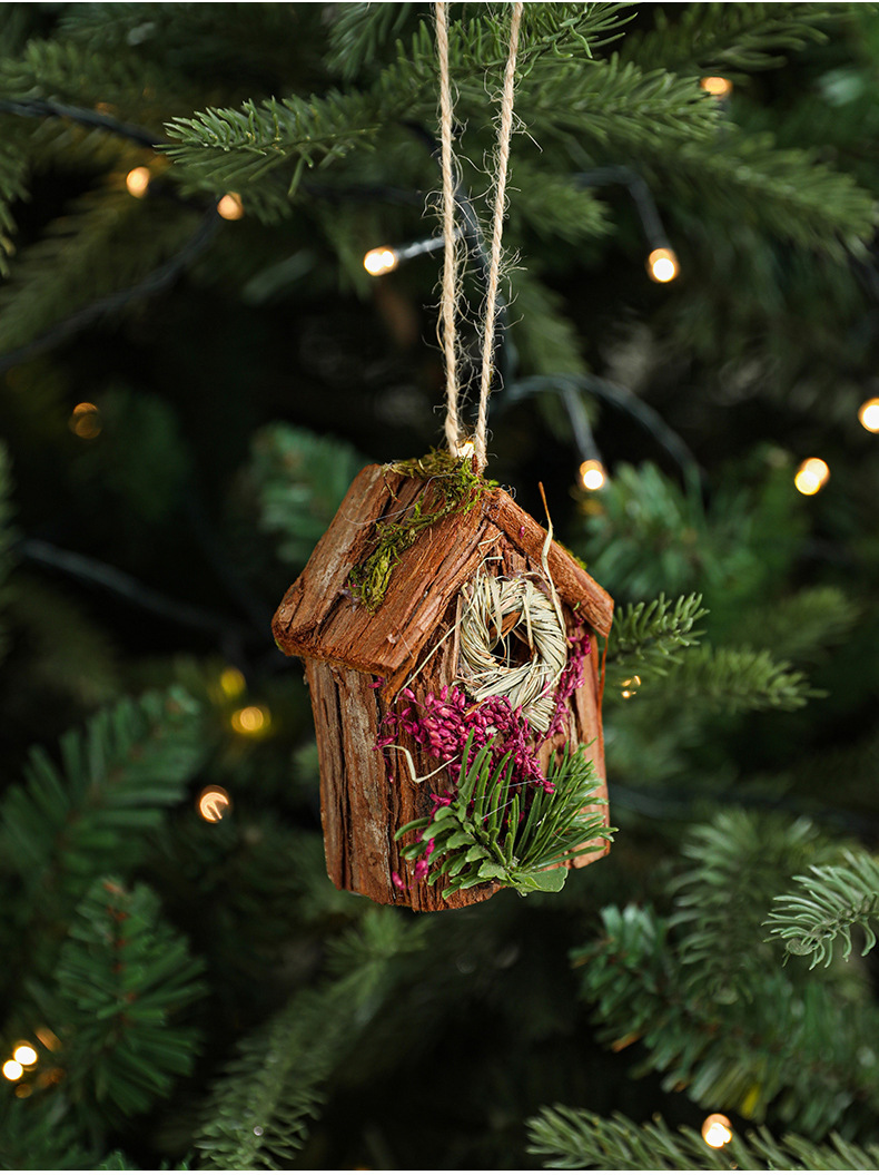 木质鸟窝房子挂件青苔树皮花草茅草鸟巢圣诞树挂饰吊饰圣诞装饰品