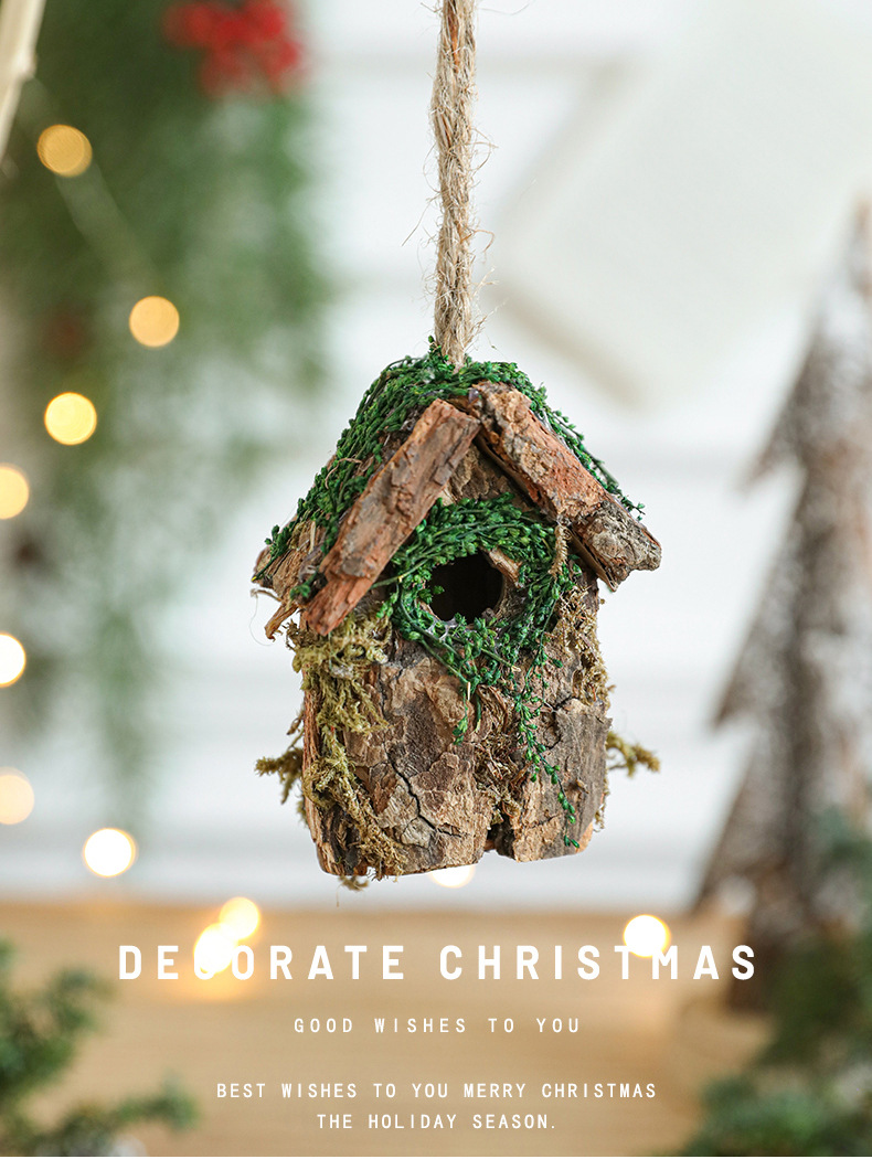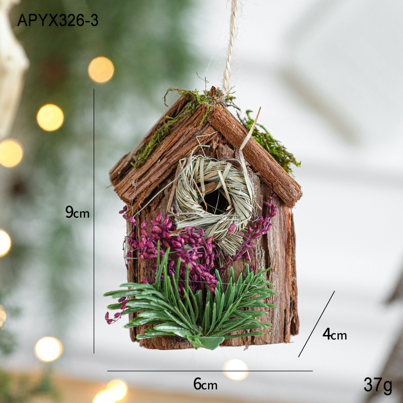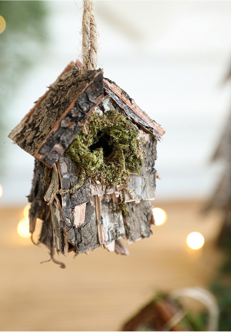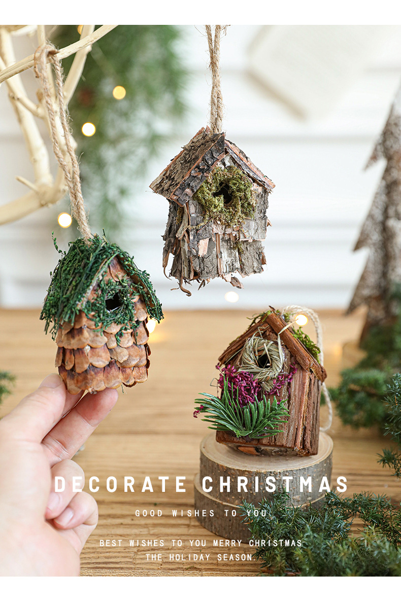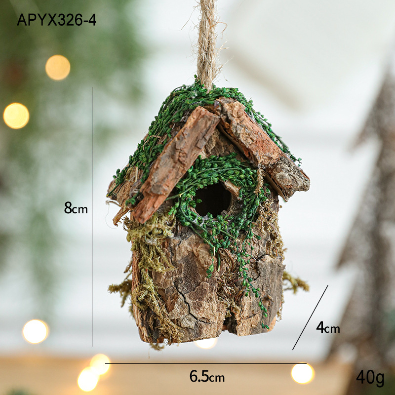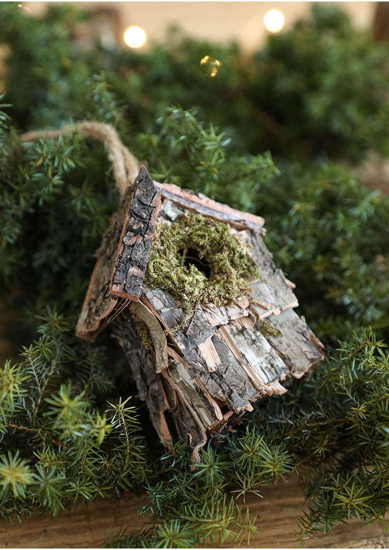 木质鸟窝房子挂件青苔树皮花草茅草鸟巢圣诞树挂饰吊饰圣诞装饰品
