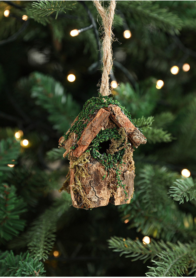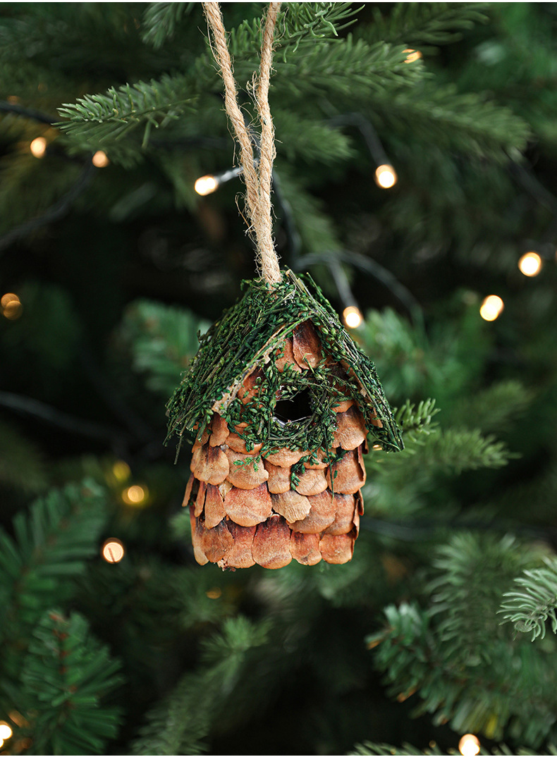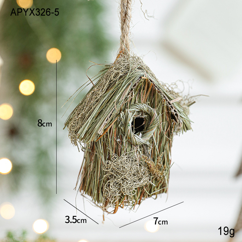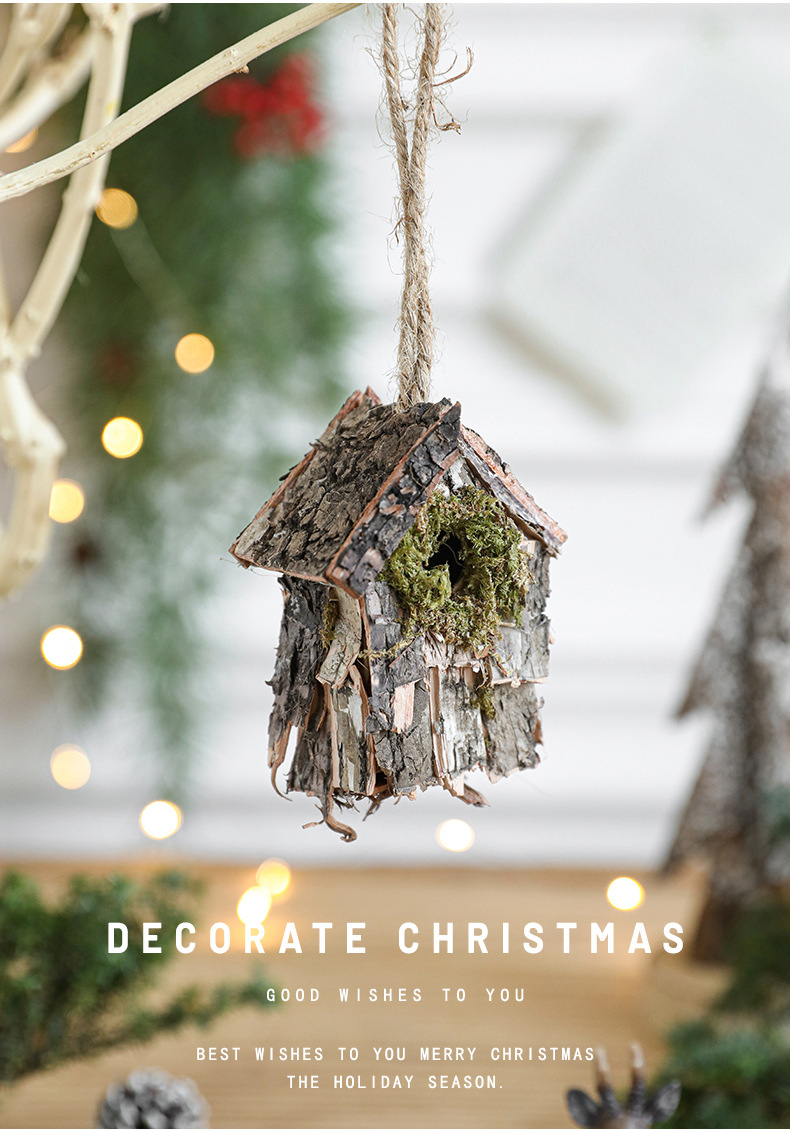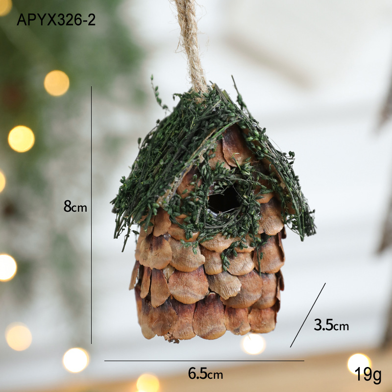 木质鸟窝房子挂件青苔树皮花草茅草鸟巢圣诞树挂饰吊饰圣诞装饰品