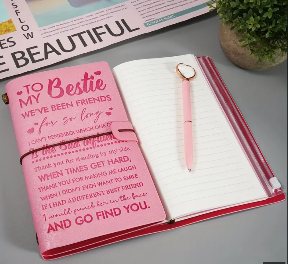 亚马逊跨境爆款希音粉色手账本可书写136页卡槽收纳袋自由搭配页