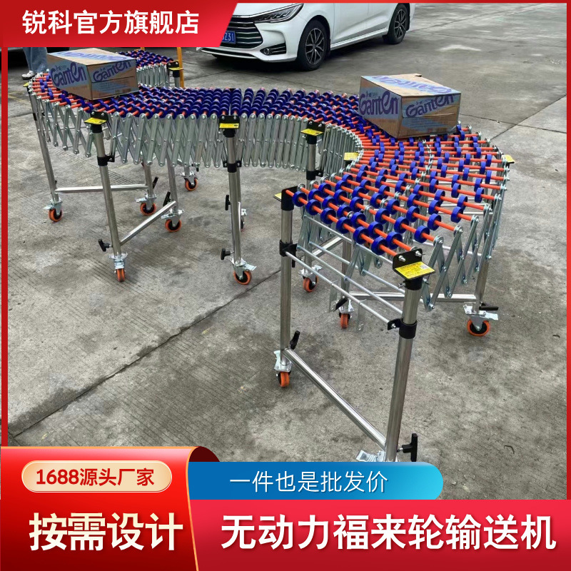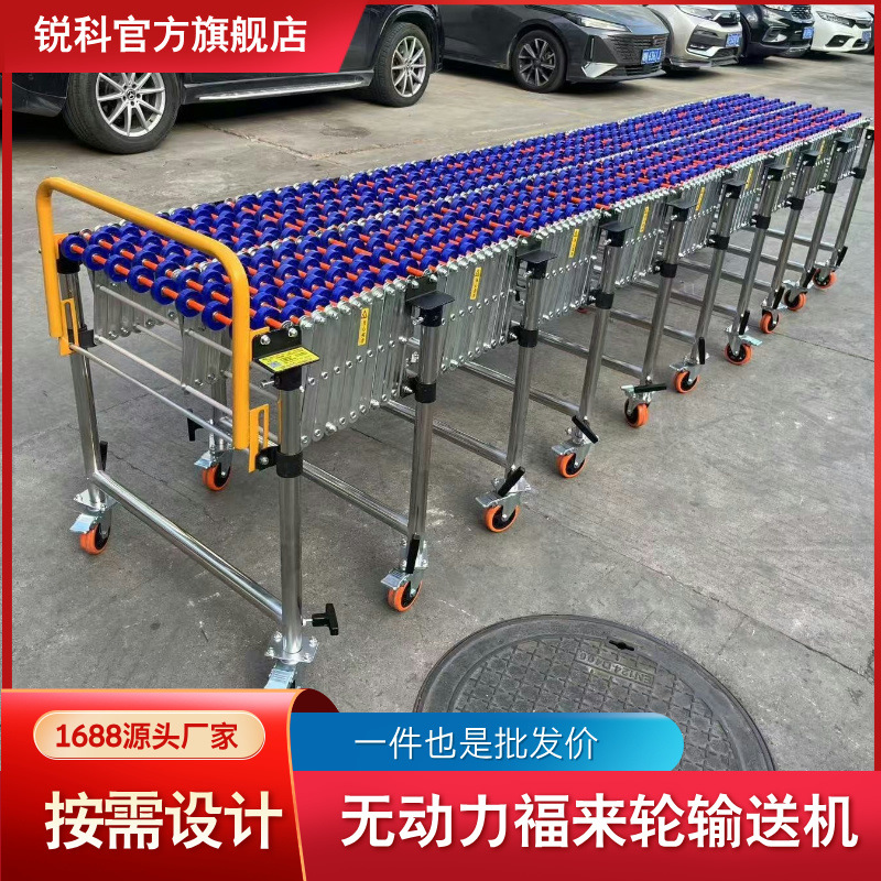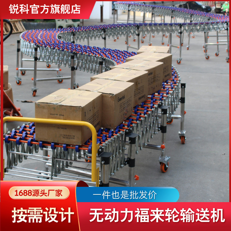 装车搬运卸货神器无动力滚轮伸缩转弯输送线高低调节福来轮输送机