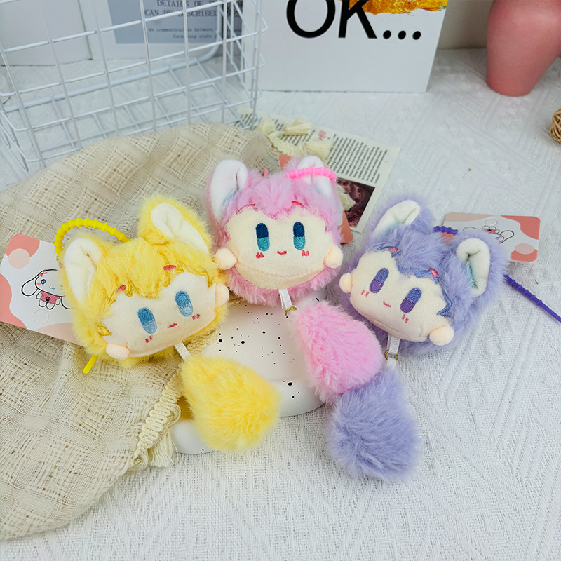 创意吱吱叫狐狸钥匙扣卡通毛绒玩偶包包挂件少女心挂饰抓机小礼物