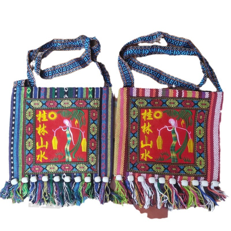 广西壮族手工织锦布包民族风绣花包斜背 桂林旅游纪念斜挎包批发