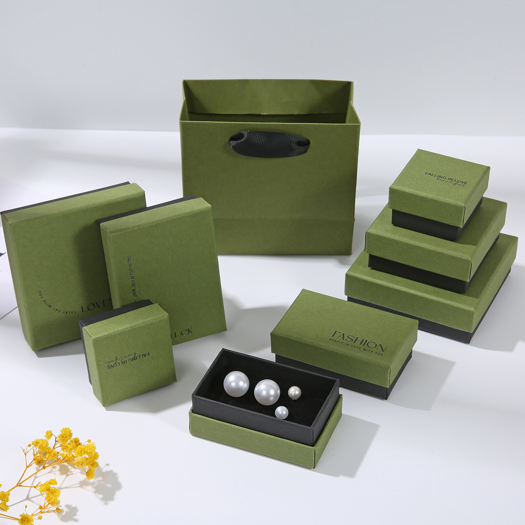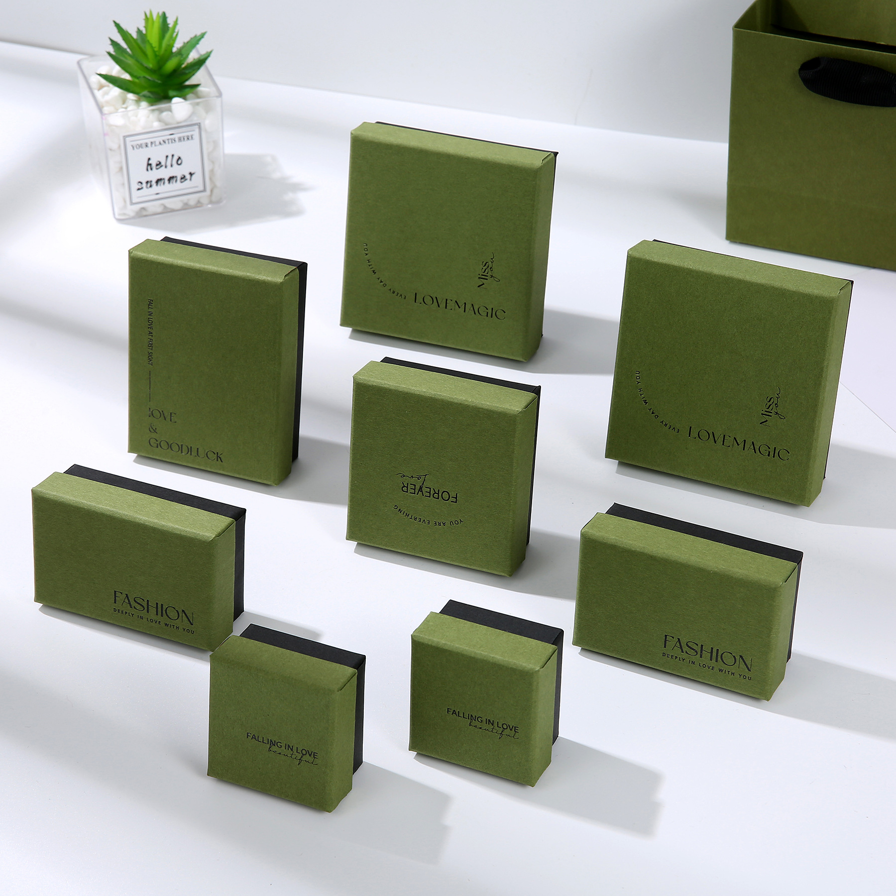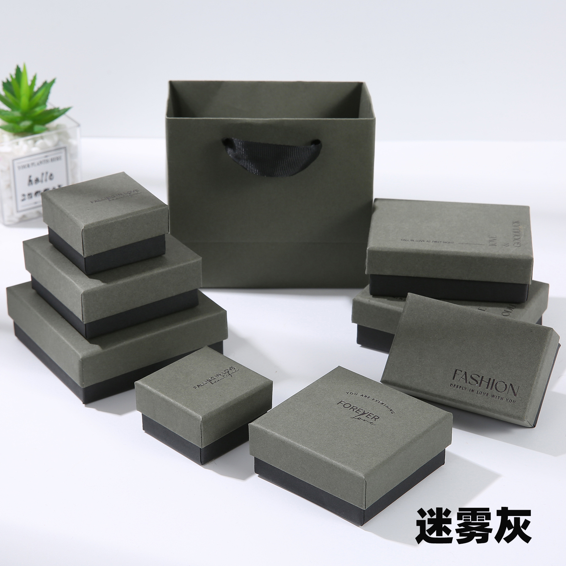 原浆纯色灰粉绿项链耳饰首饰盒戒指耳钉饰品手镯盒子现货批发