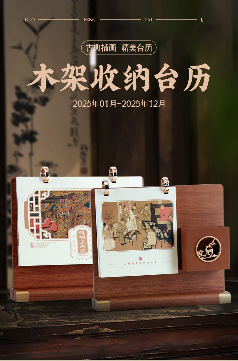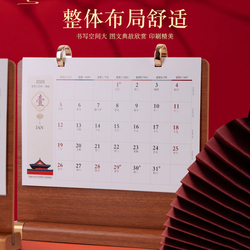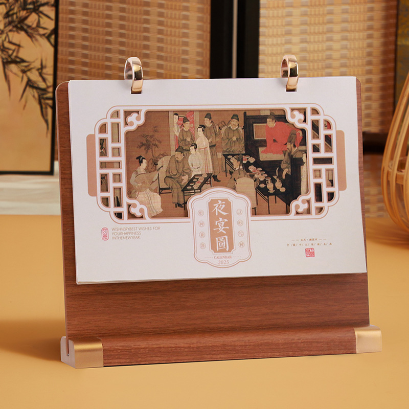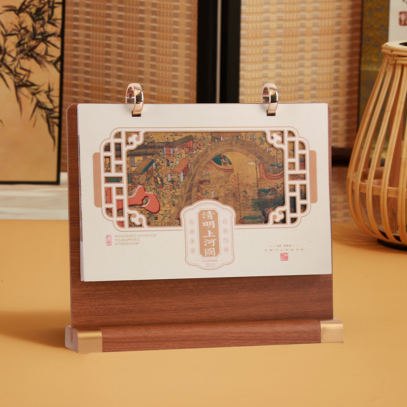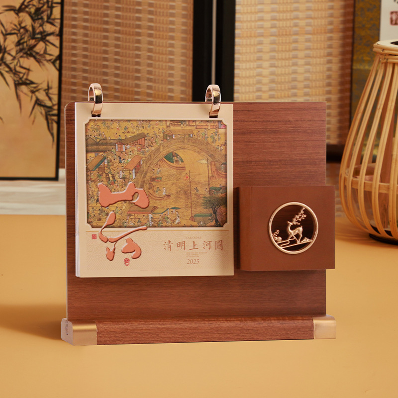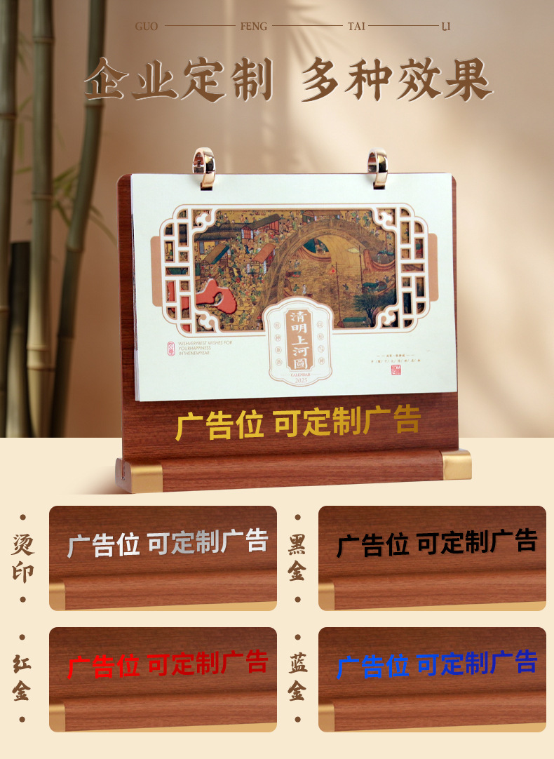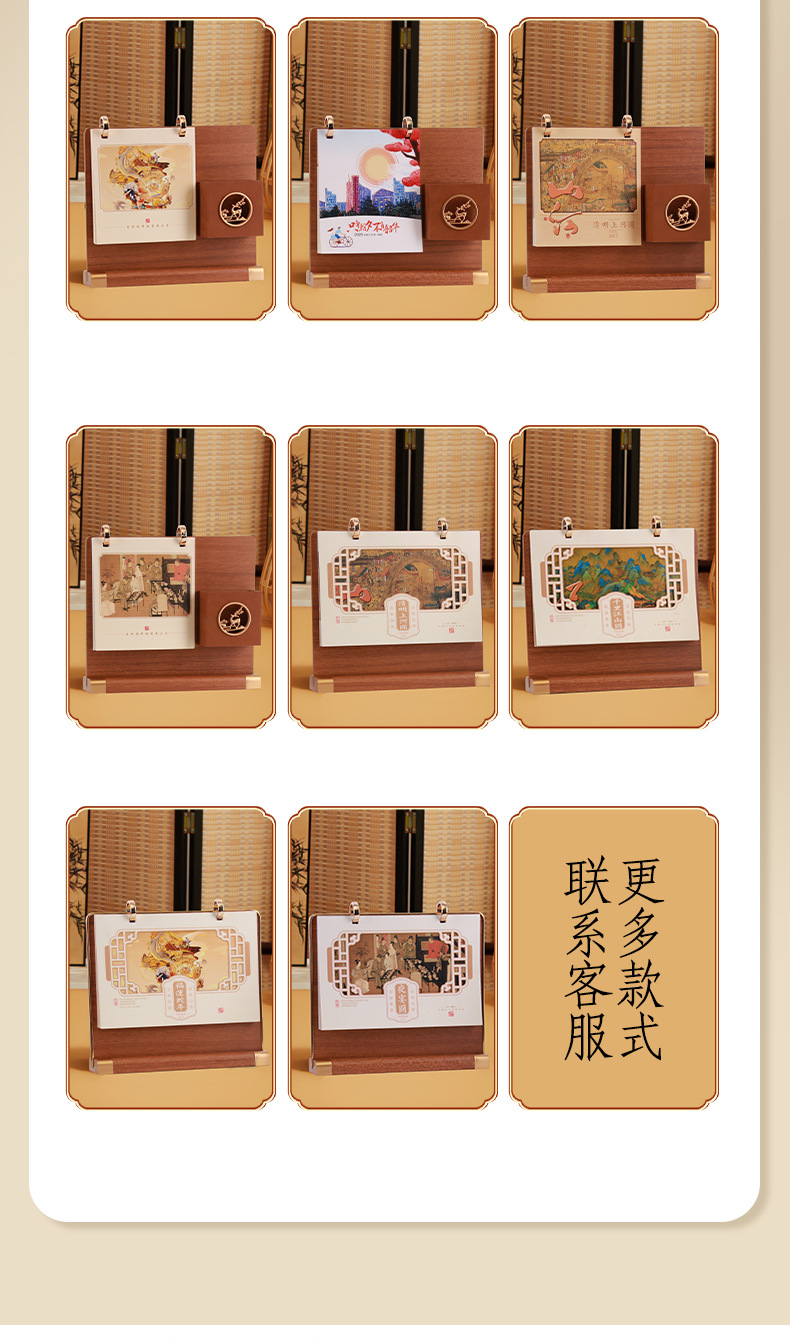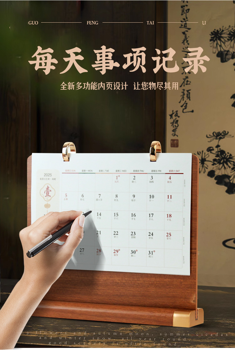 2025蛇年木质台历打卡创意企业桌面木架国潮简约办公台历现货定制