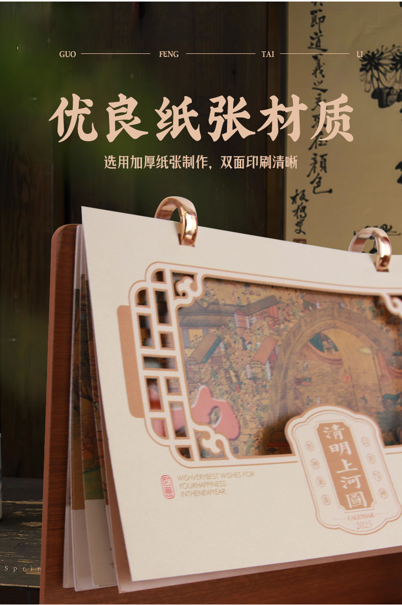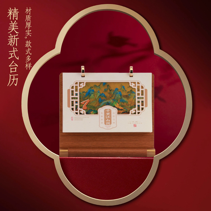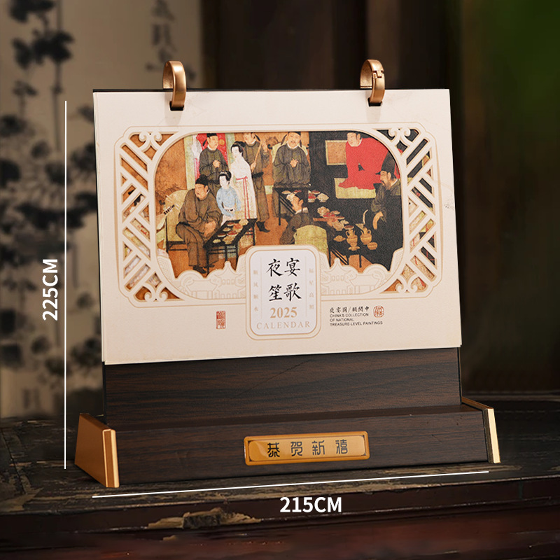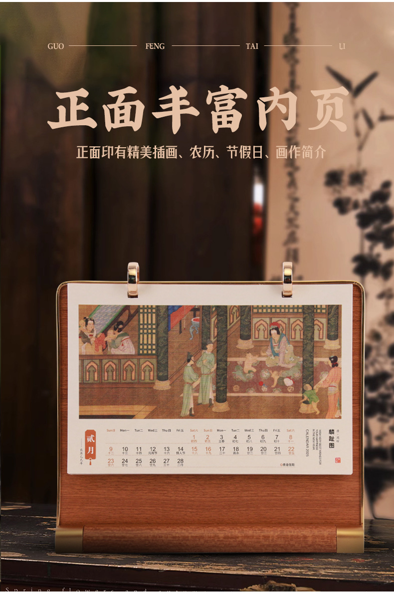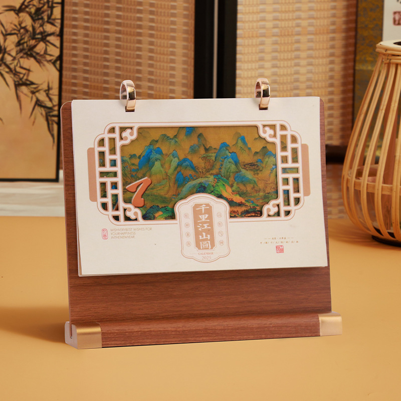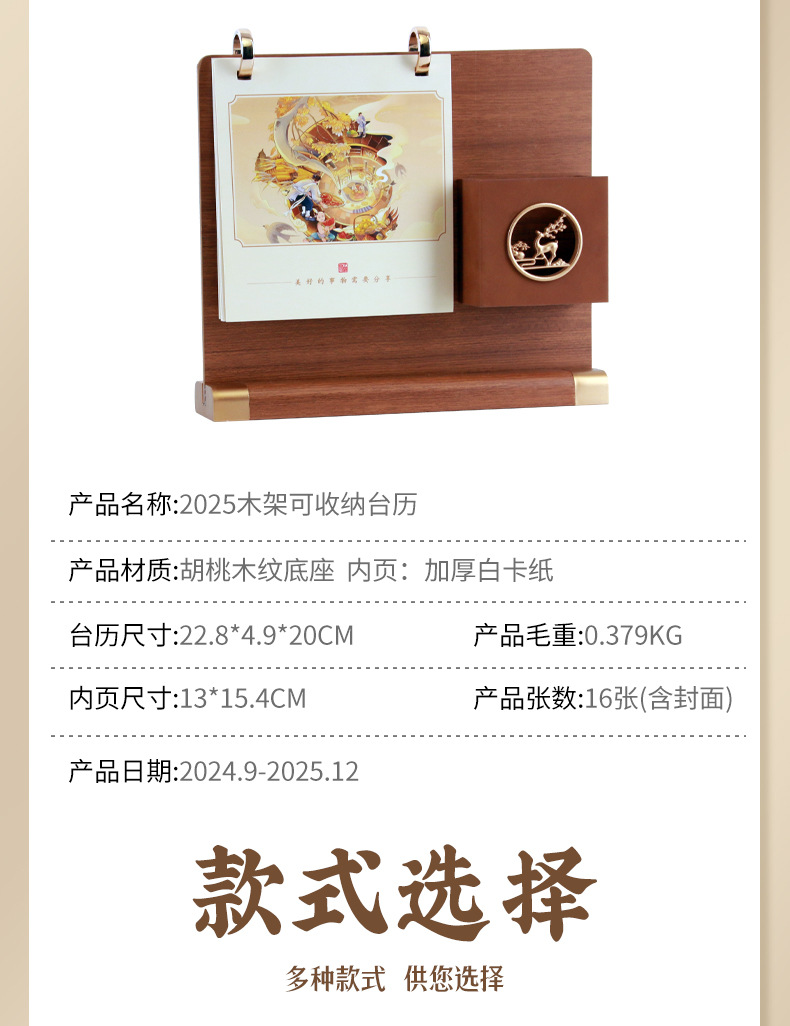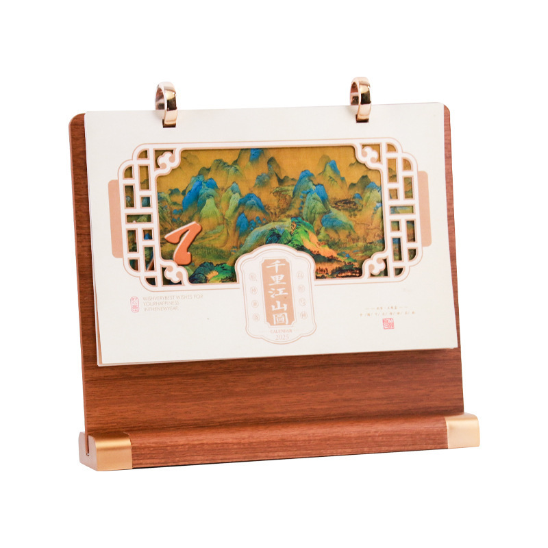 2025蛇年木质台历打卡创意企业桌面木架国潮简约办公台历现货定制