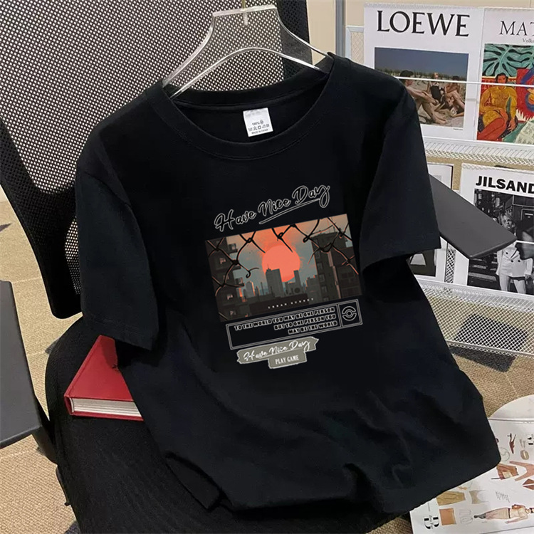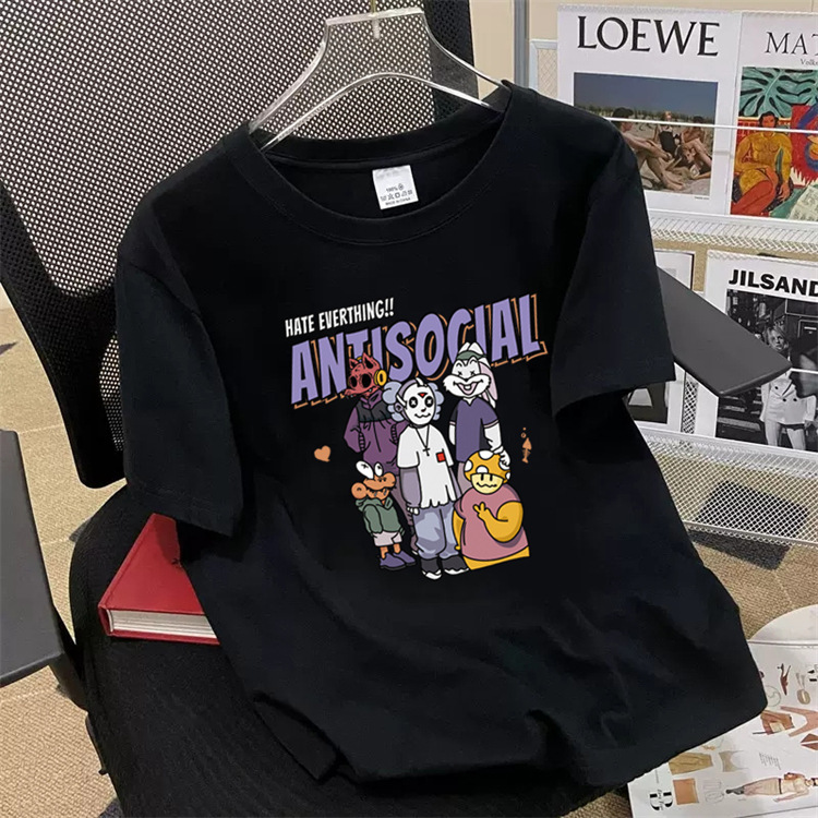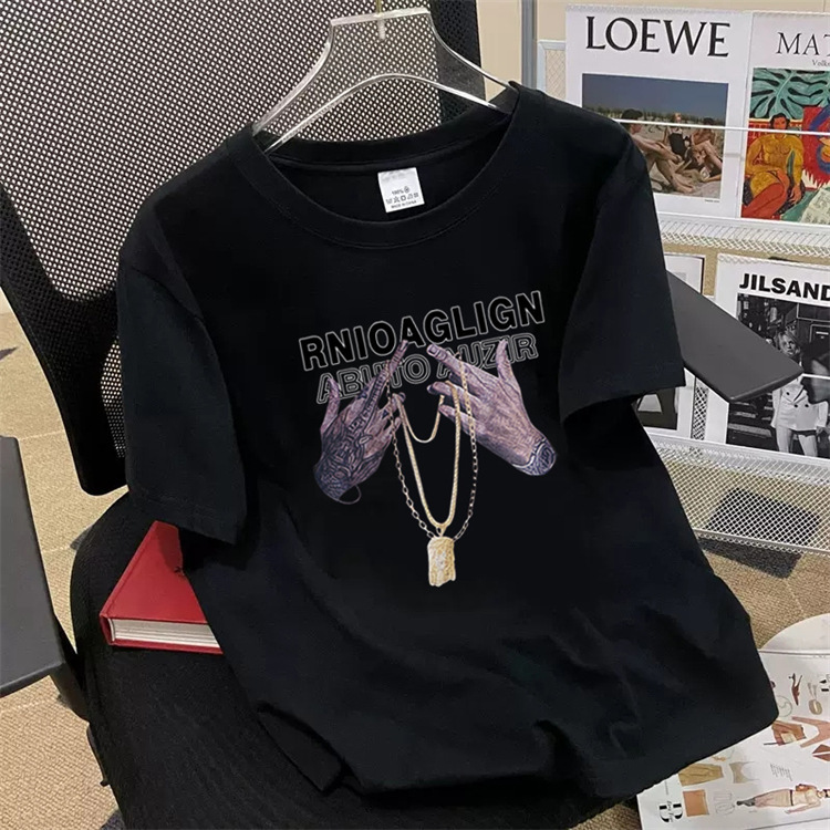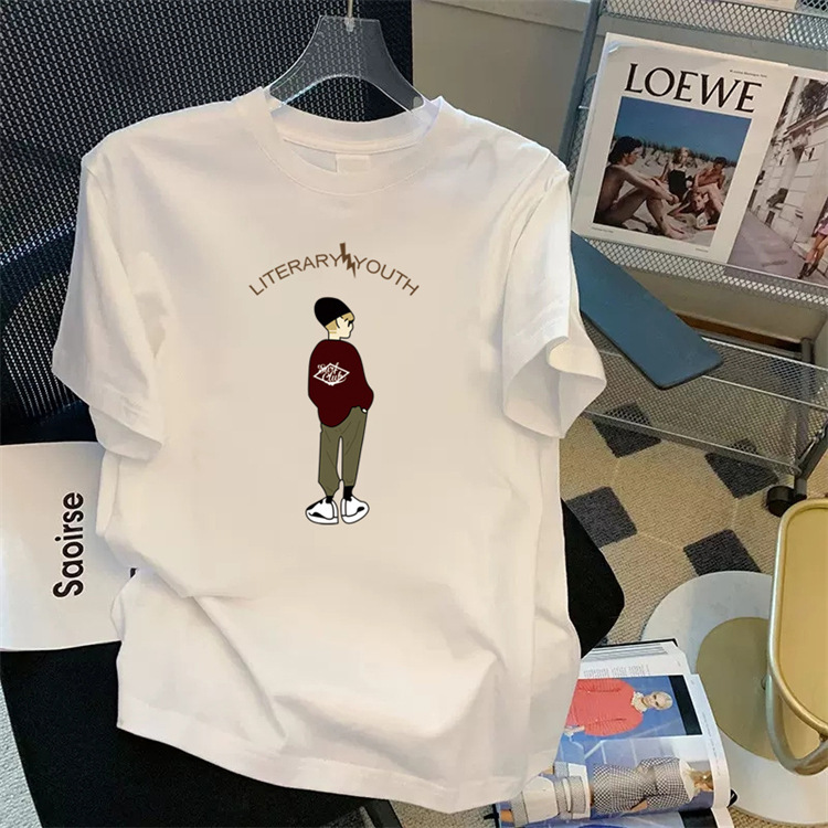 纯棉短袖T恤潮牌男t恤男士大码宽松圆领印花韩版潮流上衣ins批发