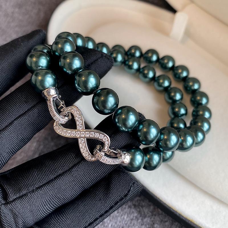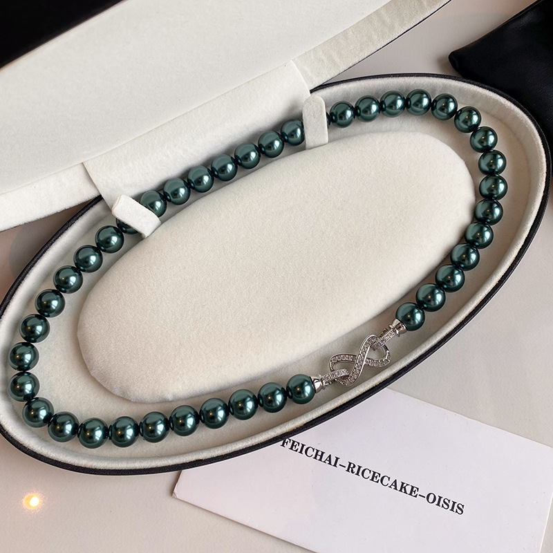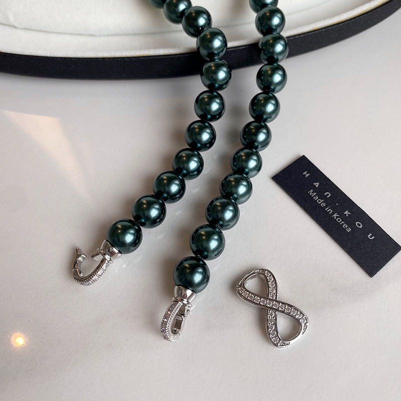 微镶满锆石8字扣锁骨链时尚气质卫衣毛衣链施家大溪地珍珠项链女