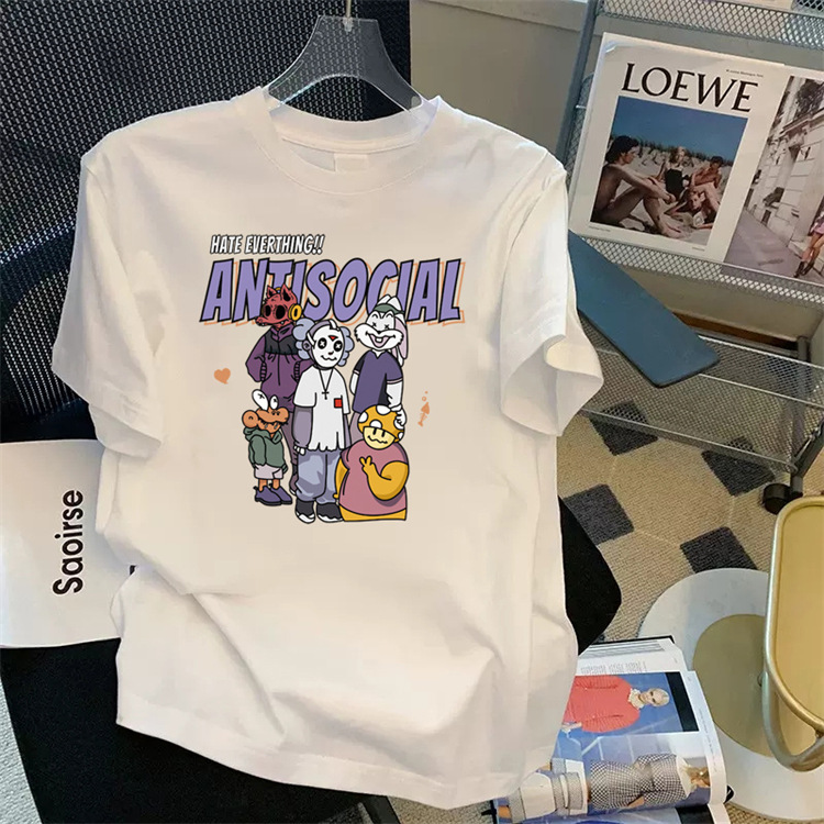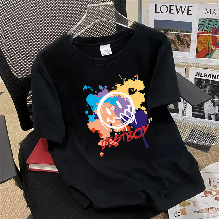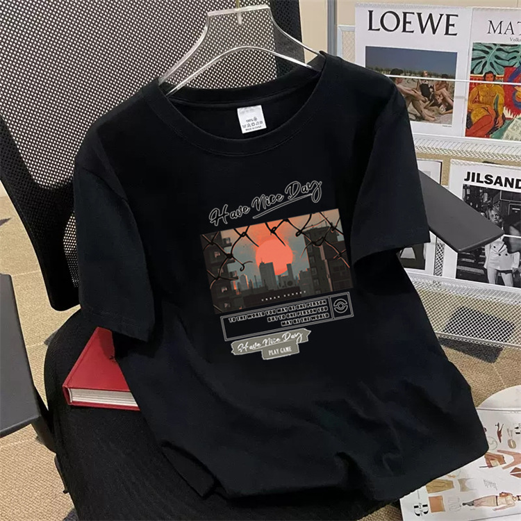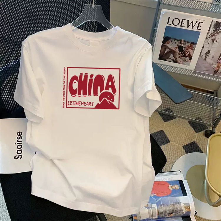 高端短袖t恤男潮流圆领潮牌印花百搭轻奢痞帅休闲上衣T恤宽松运动