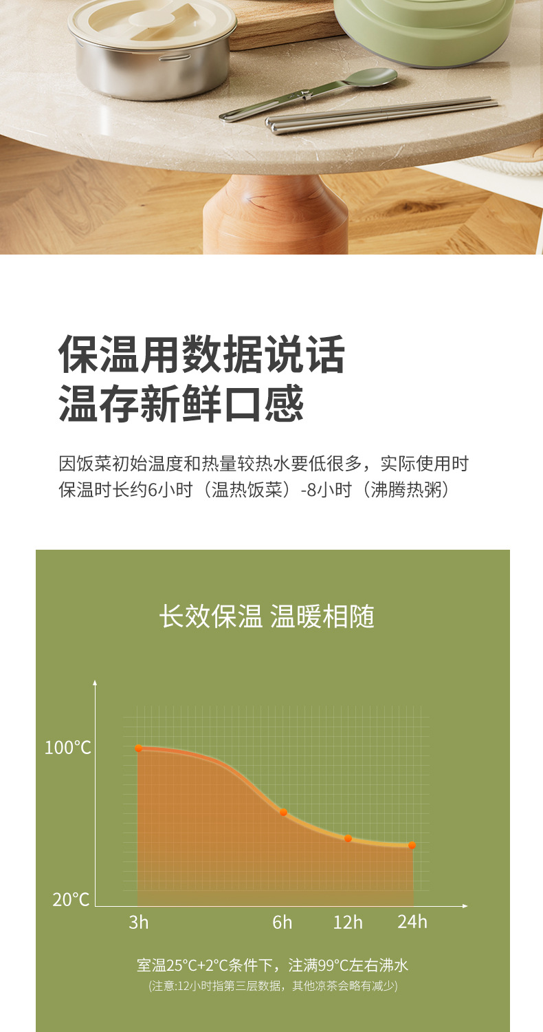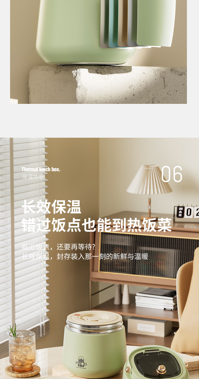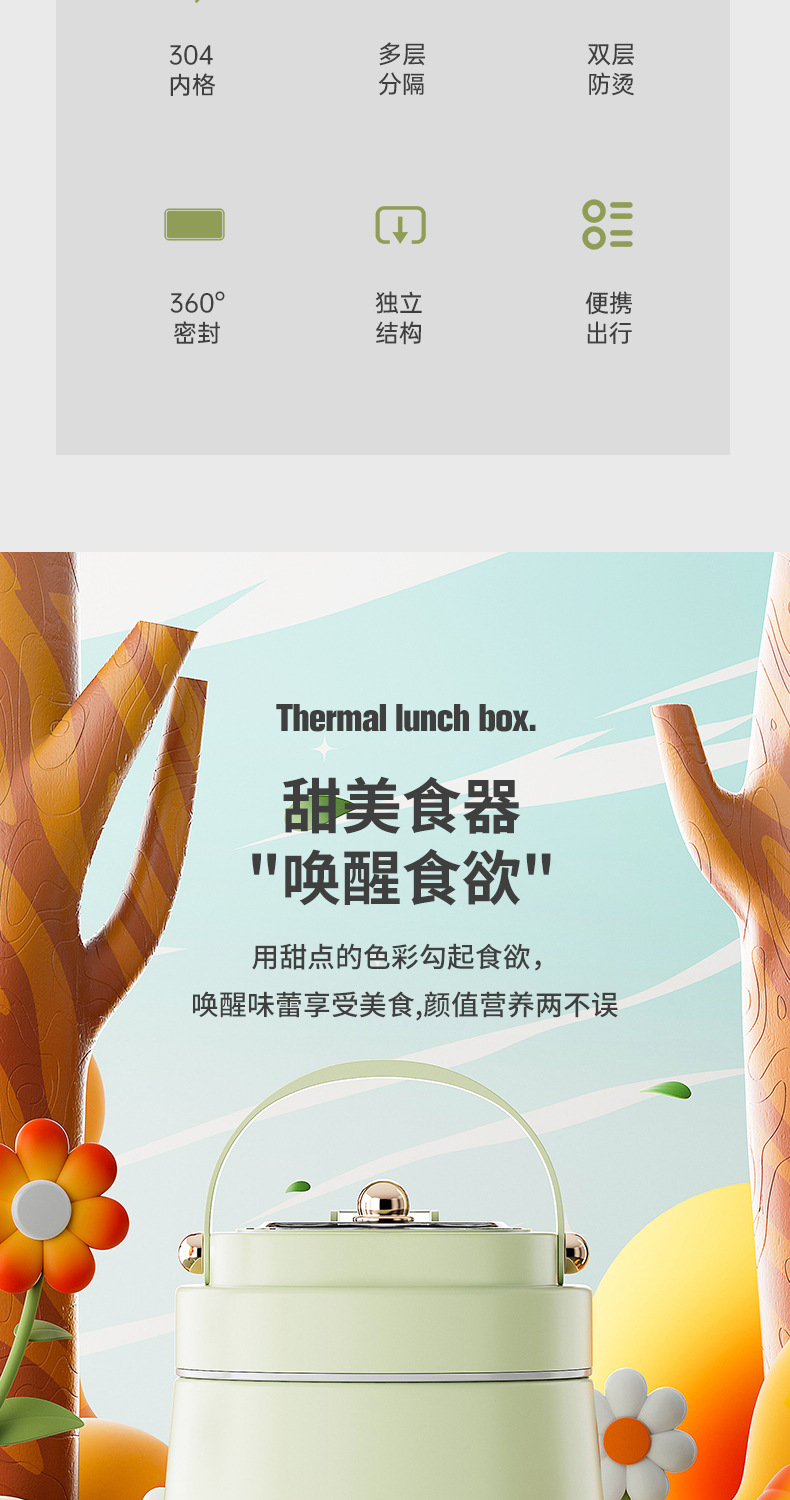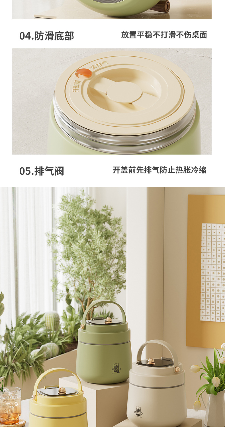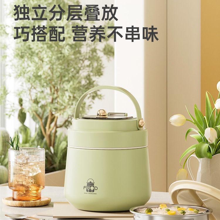 跨境304不锈钢真空提锅上班族便携便当饭盒恒温防溢学生带饭餐盒