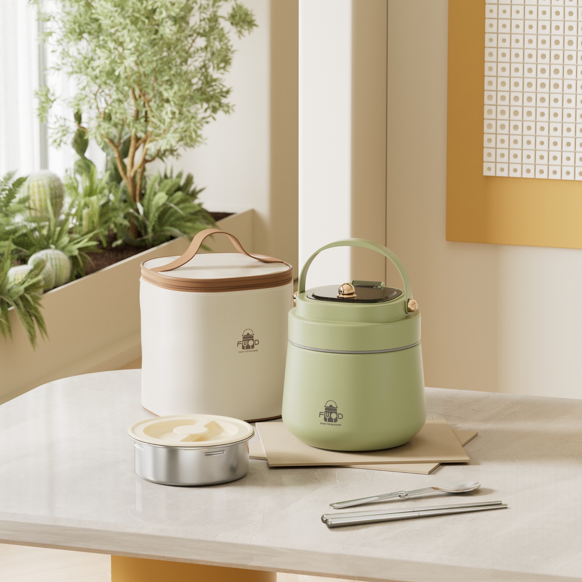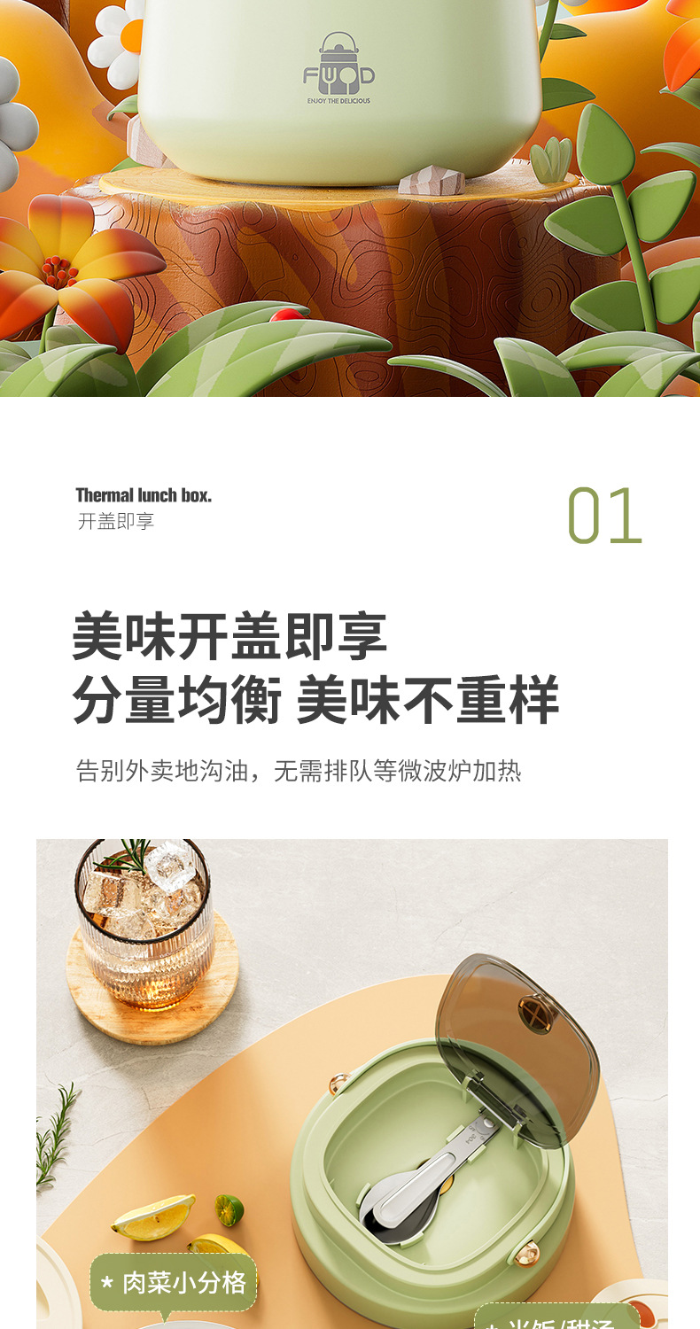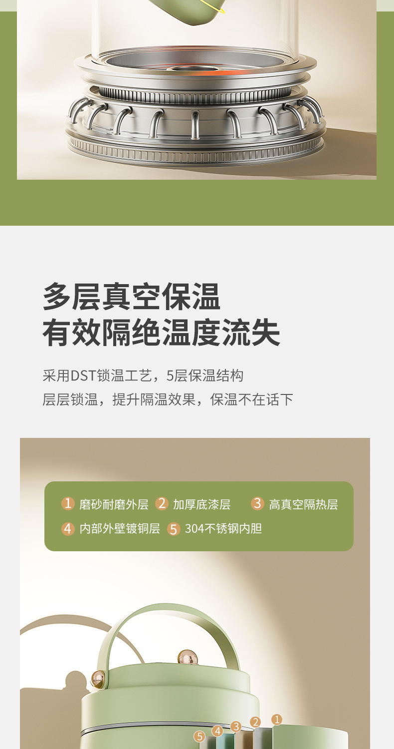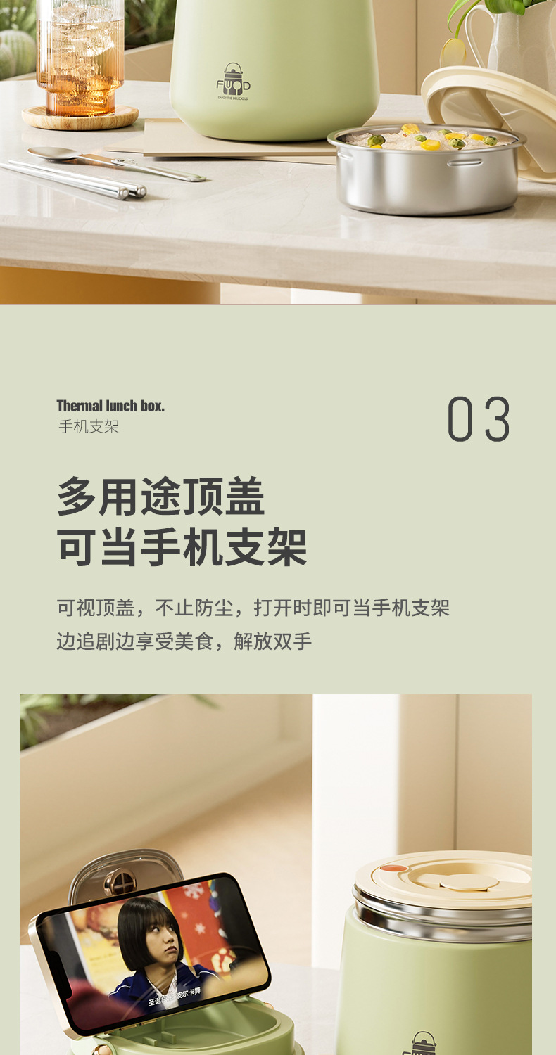 跨境304不锈钢真空提锅上班族便携便当饭盒恒温防溢学生带饭餐盒