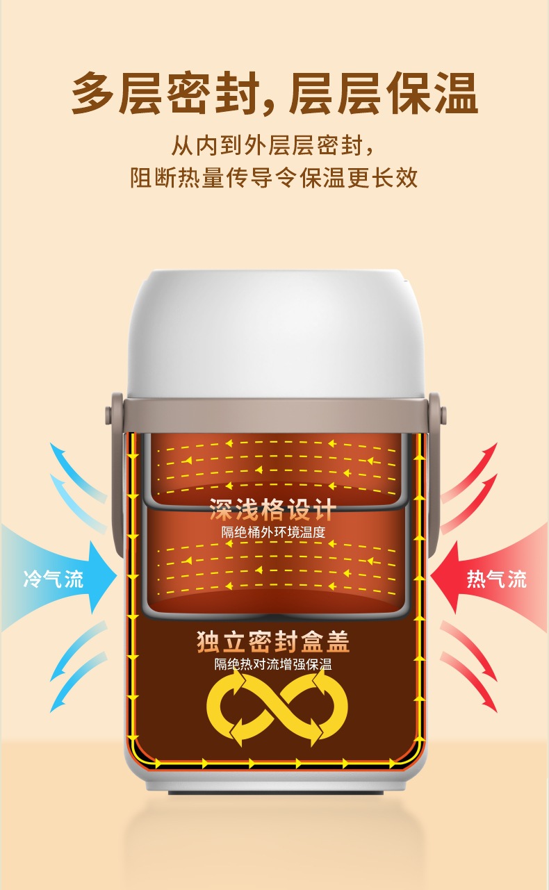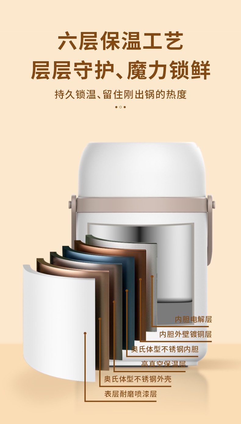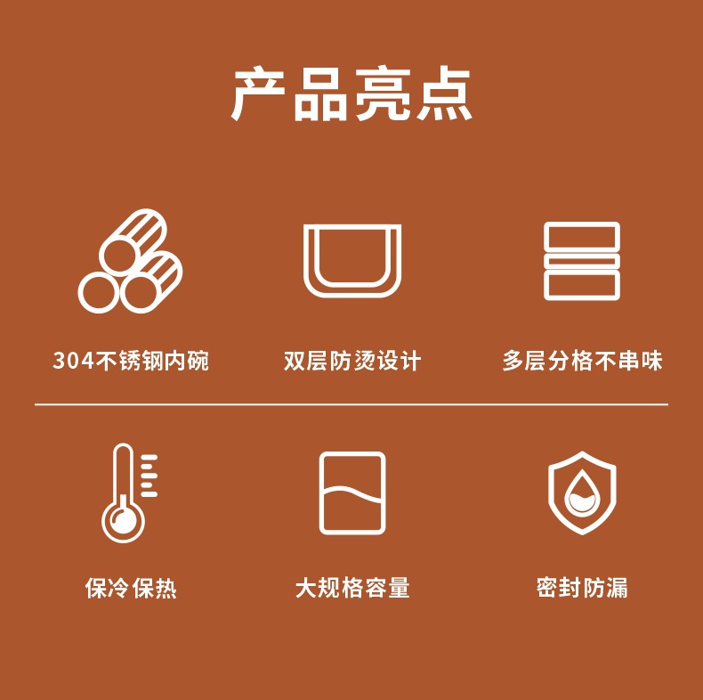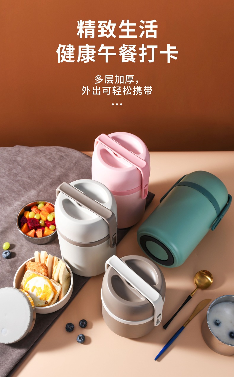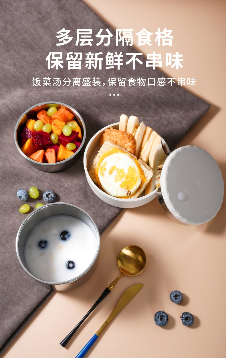 304不锈钢保温提锅上班族学生真空焖烧饭盒分层大容量保温便当盒