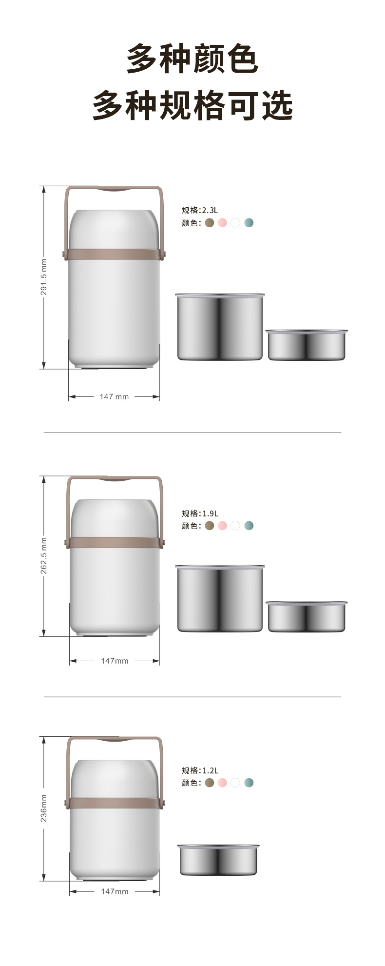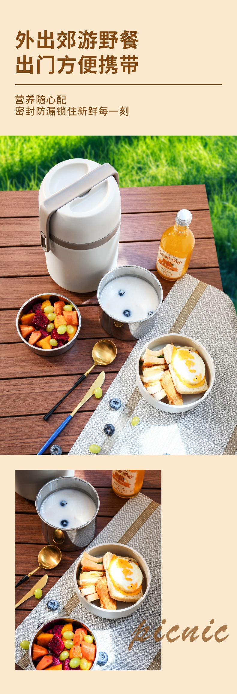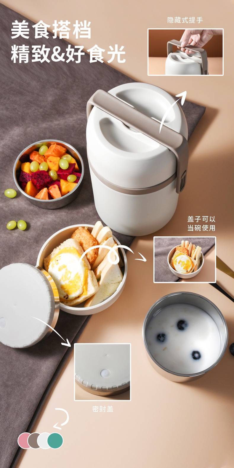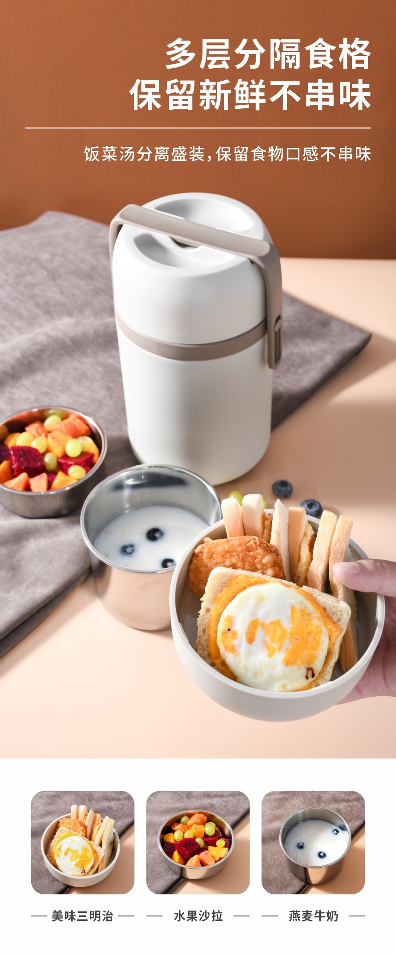 304不锈钢保温提锅上班族学生真空焖烧饭盒分层大容量保温便当盒