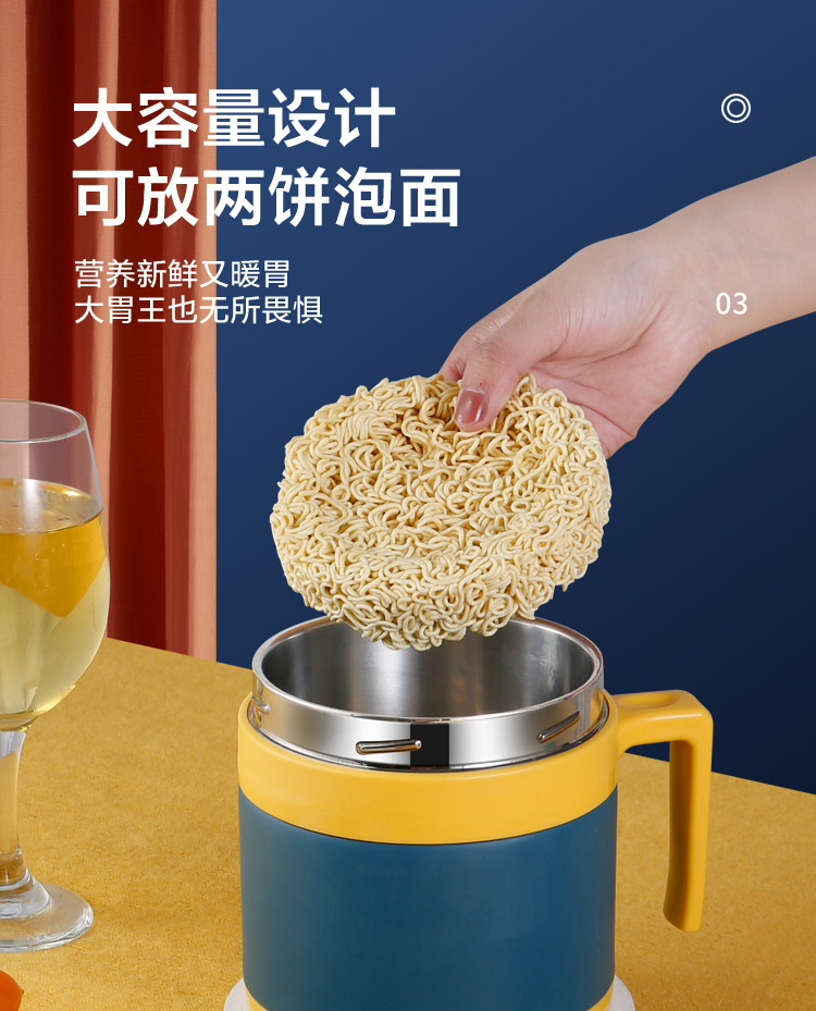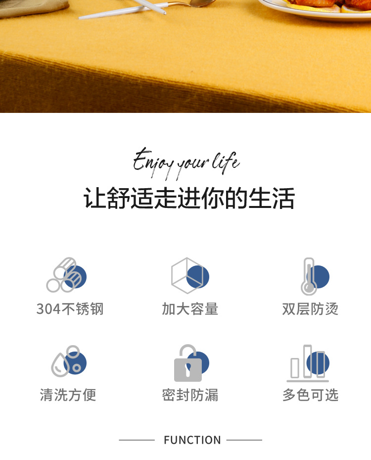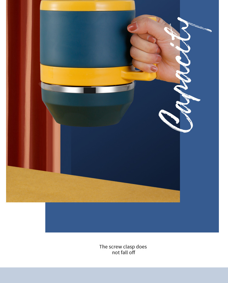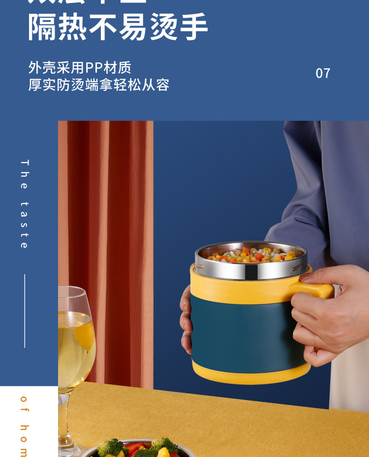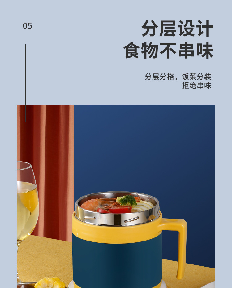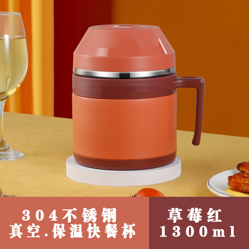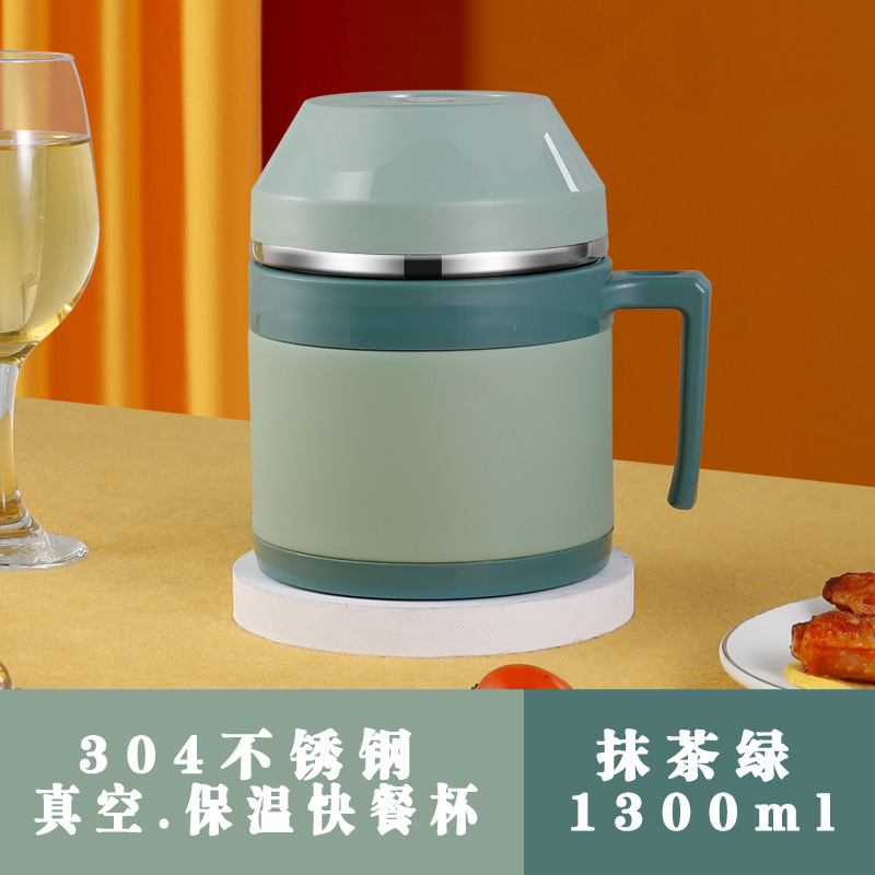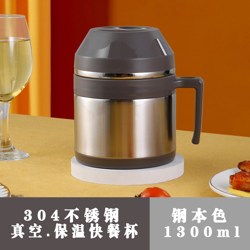 学生304不锈钢真空保温便当盒 双层快餐杯带盖泡面碗加厚带手柄
