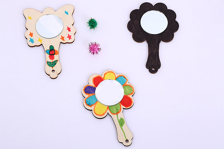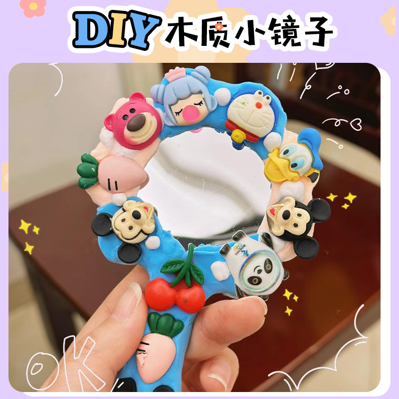 镜子diy材料包妇女节手工小礼物木质粘土幼儿园美工区送老师装饰