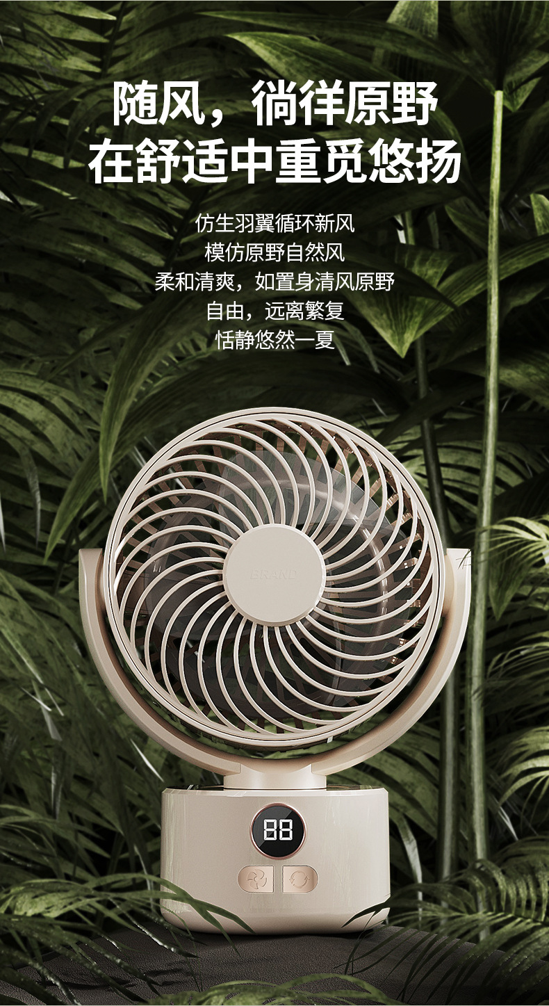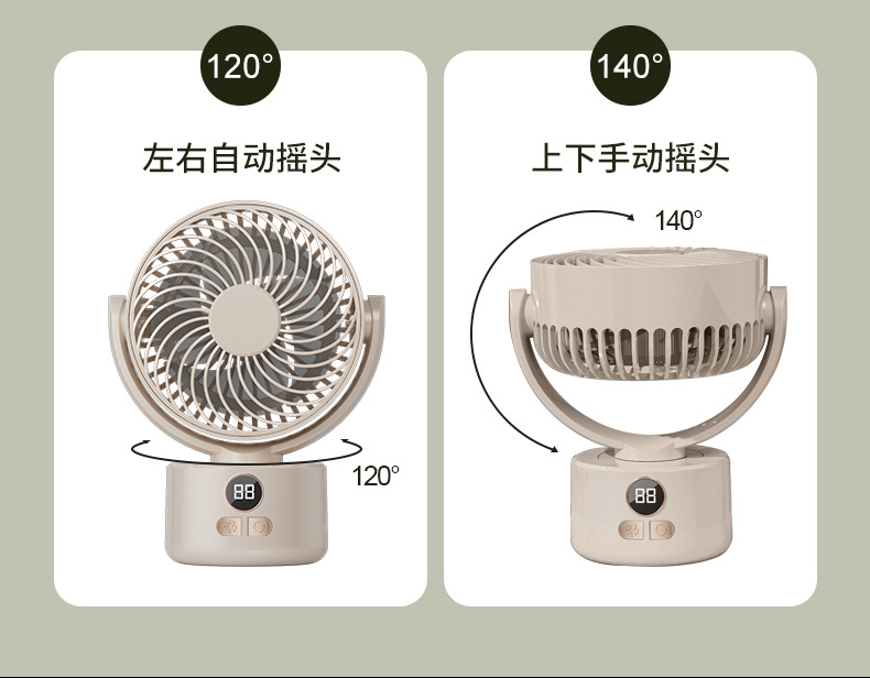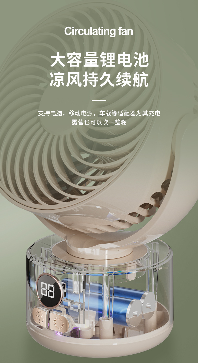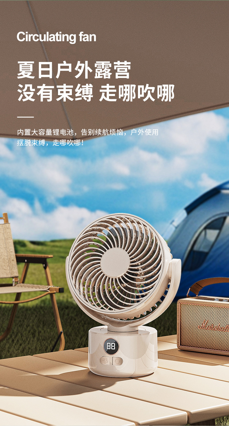 2024跨境露营风扇户外桌面循环大风力家用usb数显两用 三角架风扇