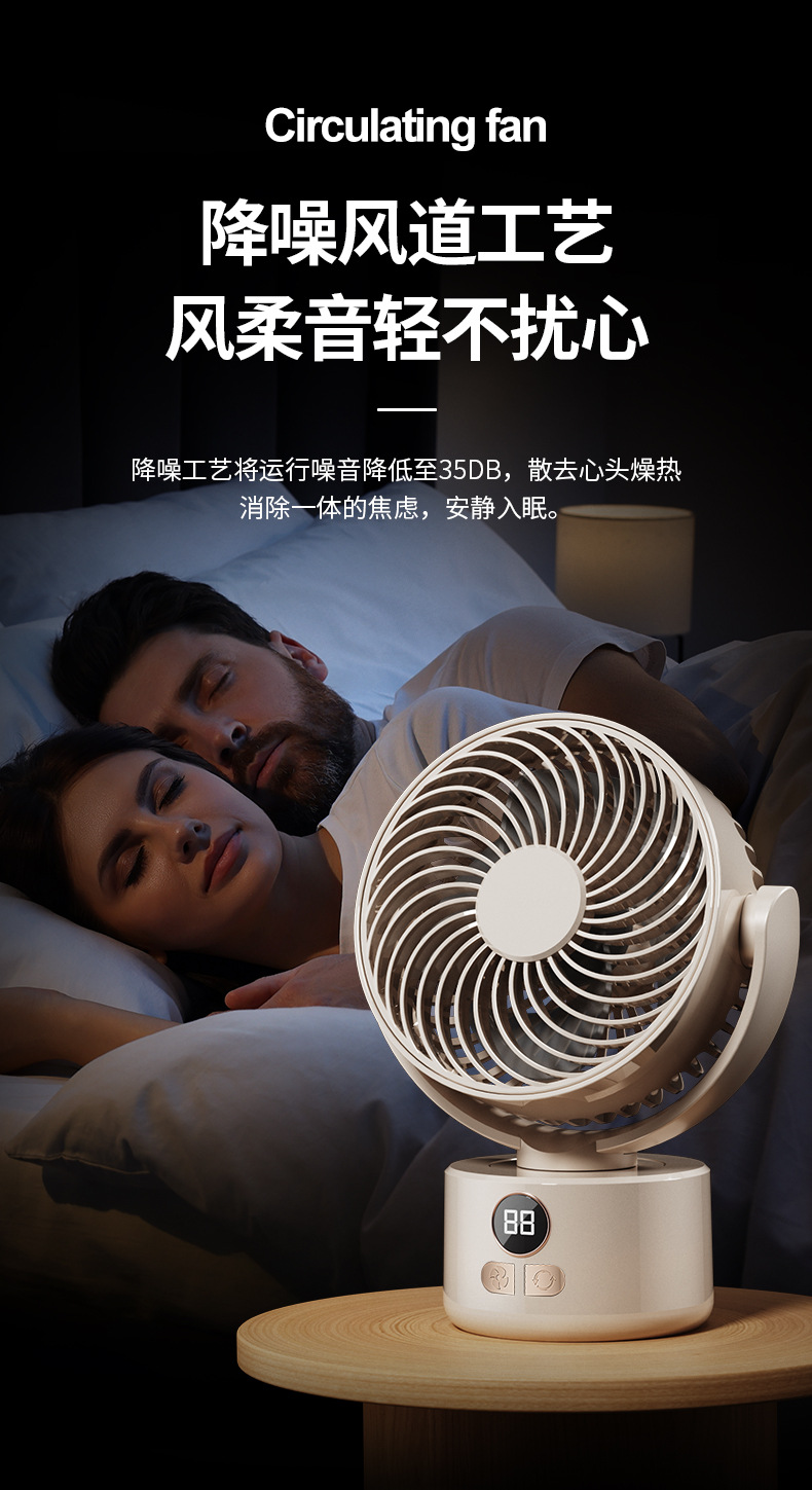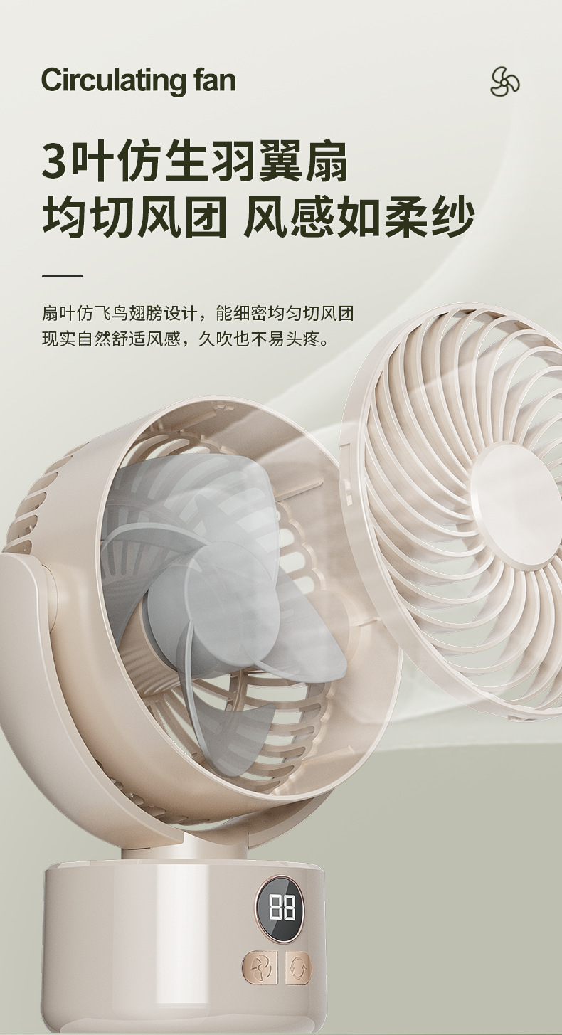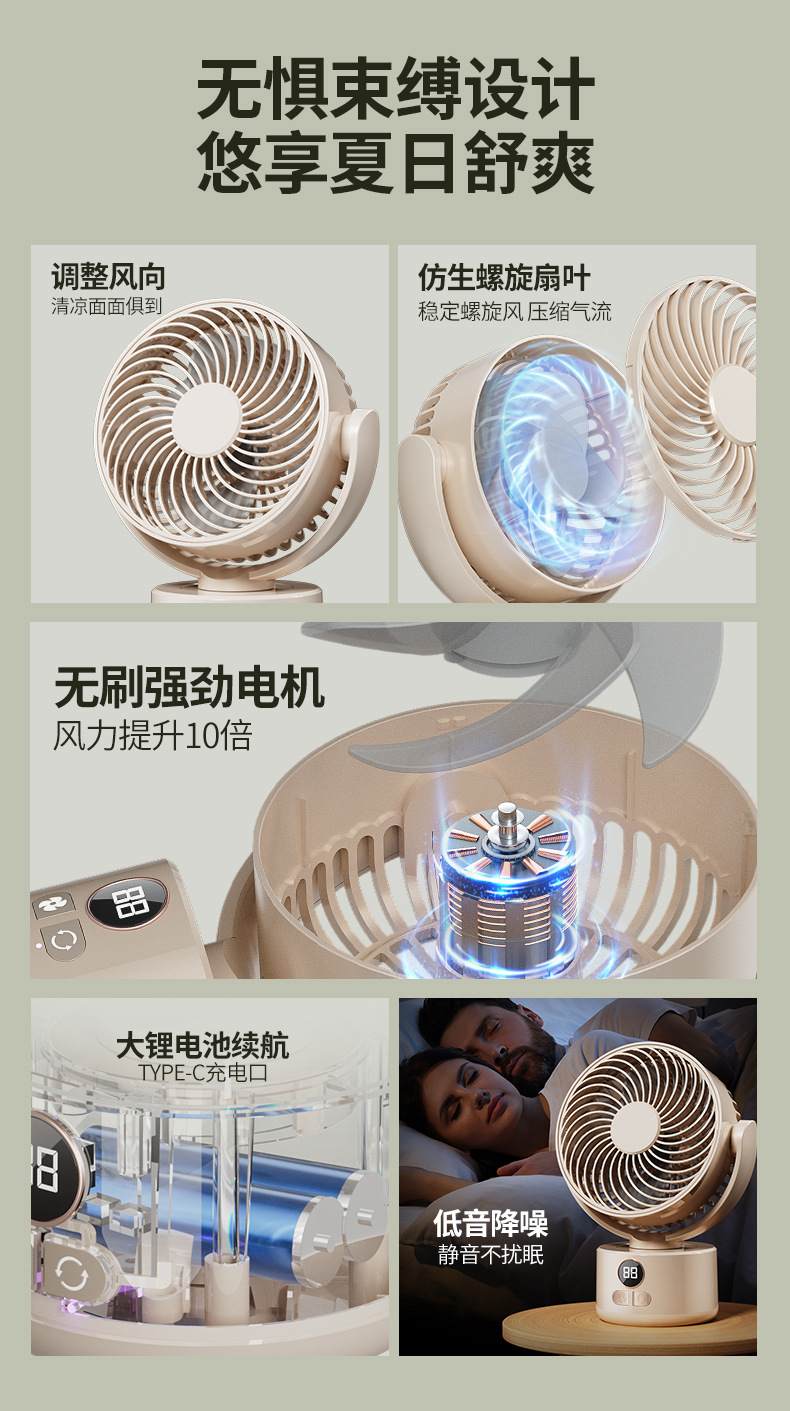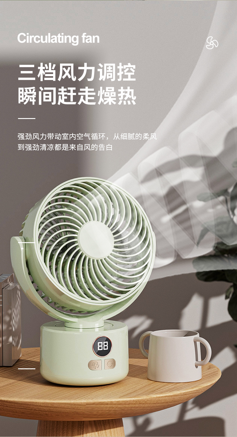 2024跨境露营风扇户外桌面循环大风力家用usb数显两用 三角架风扇