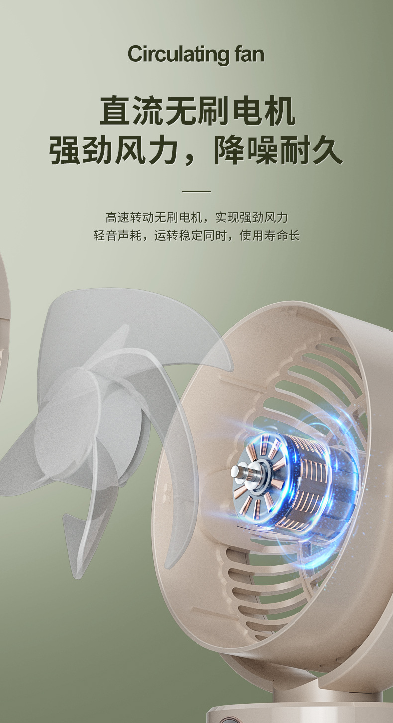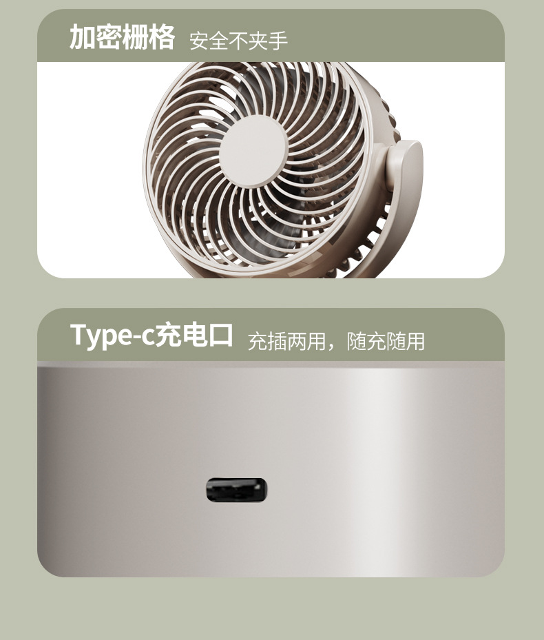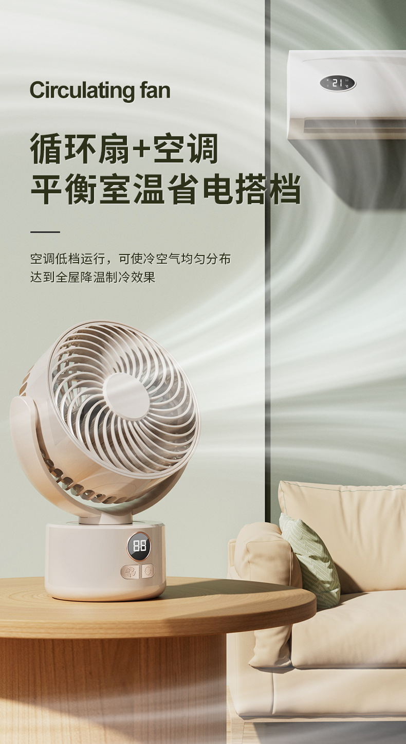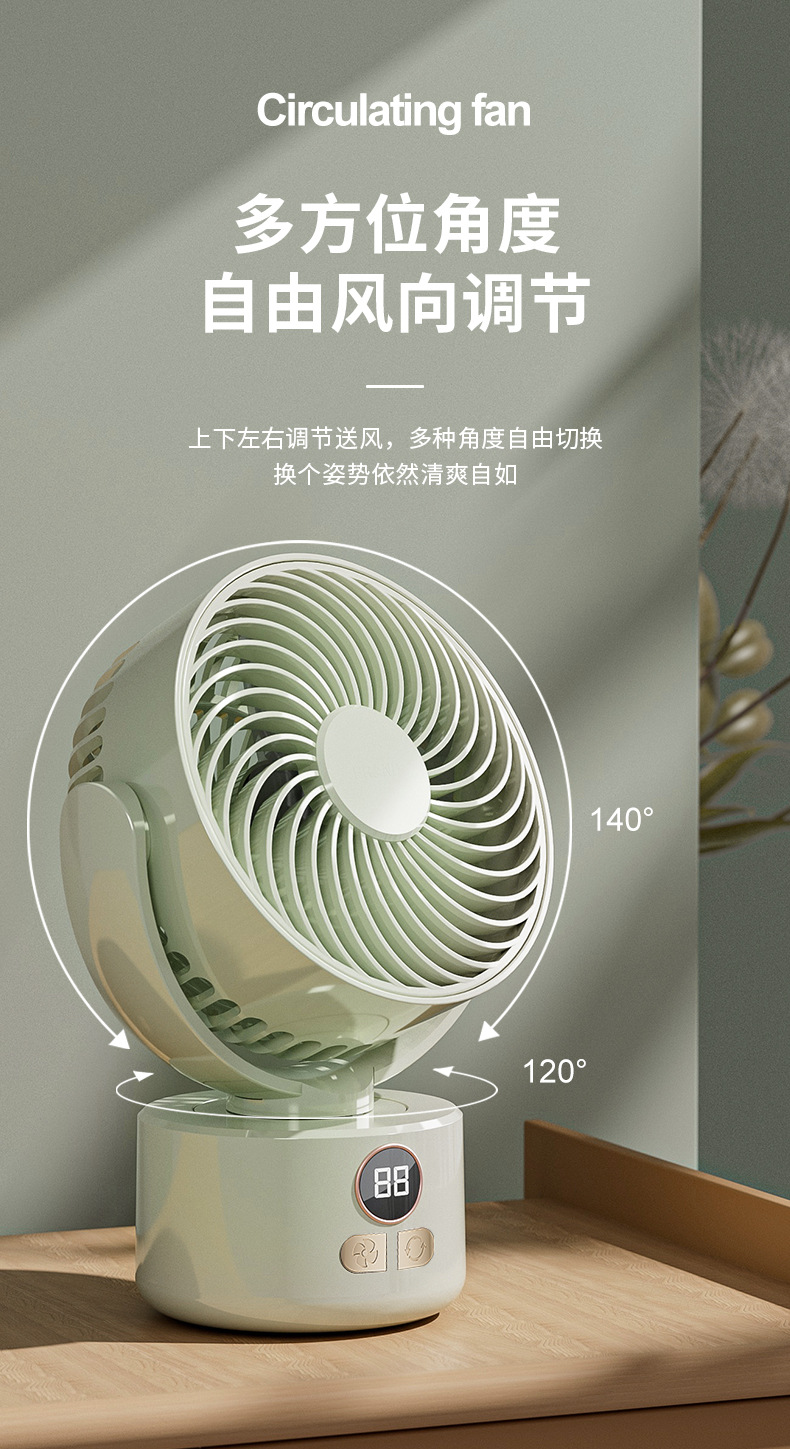 2024跨境露营风扇户外桌面循环大风力家用usb数显两用 三角架风扇