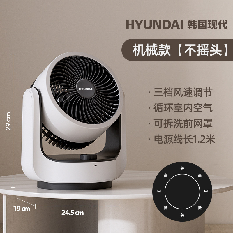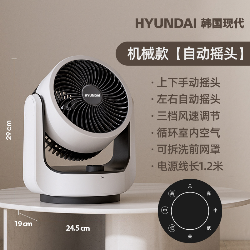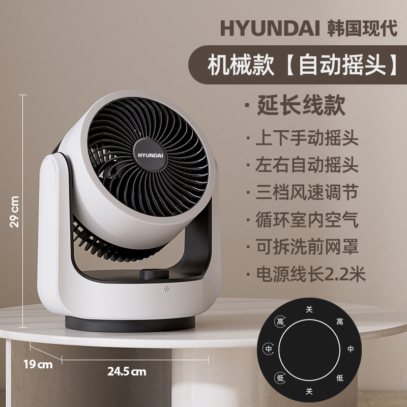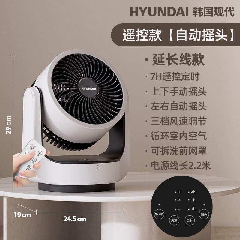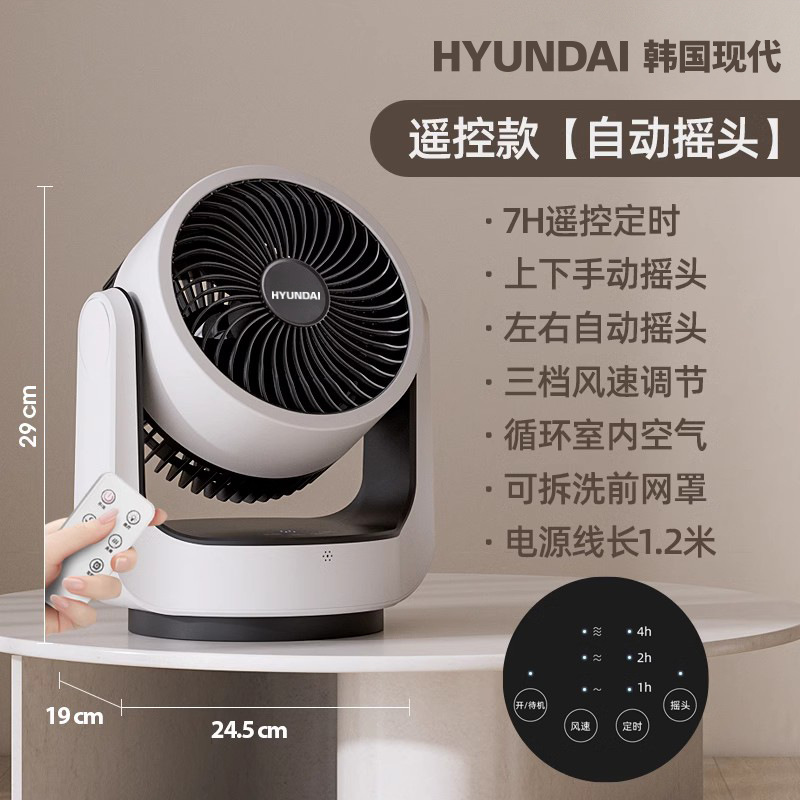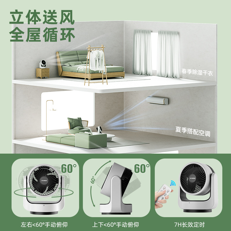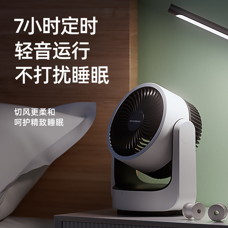 HYUNDAI电风扇静音定时涡轮对流风便携式办公桌面台扇空气循环扇