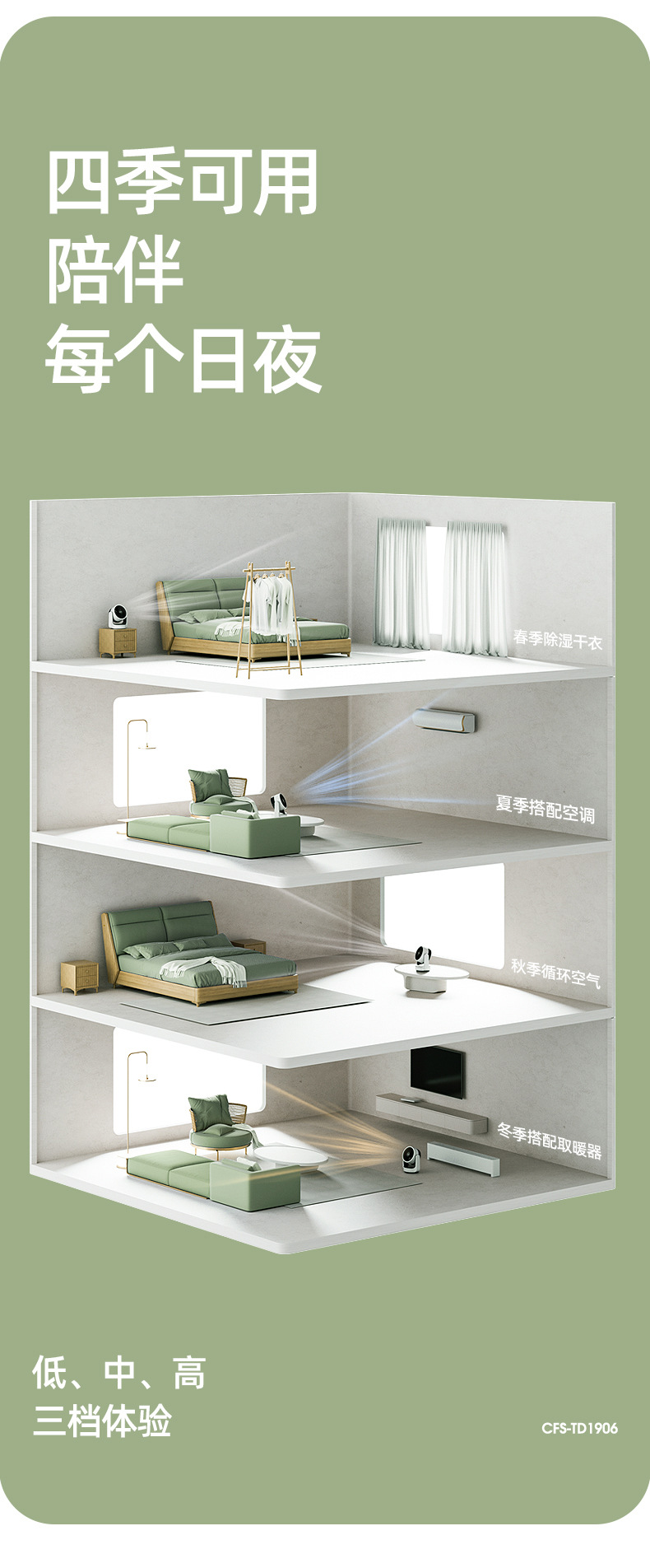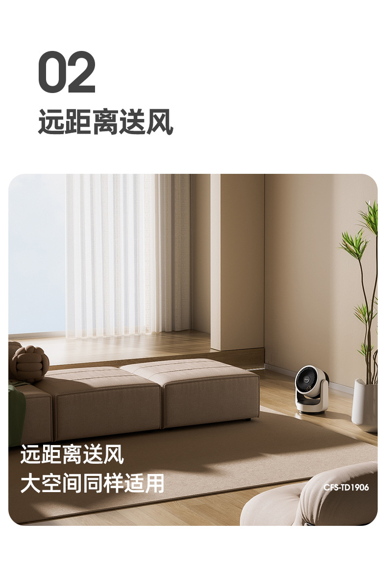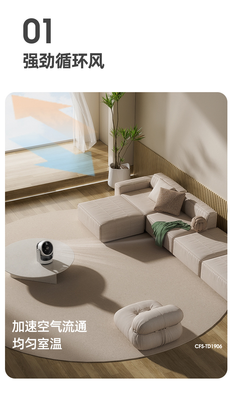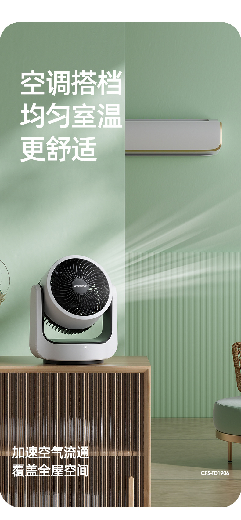 HYUNDAI电风扇静音定时涡轮对流风便携式办公桌面台扇空气循环扇