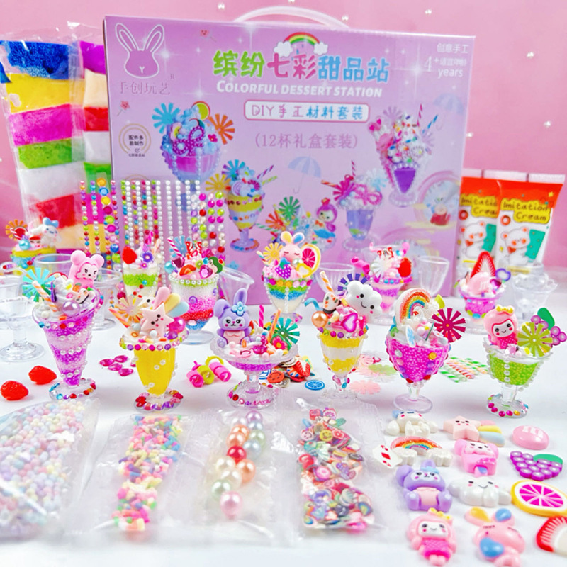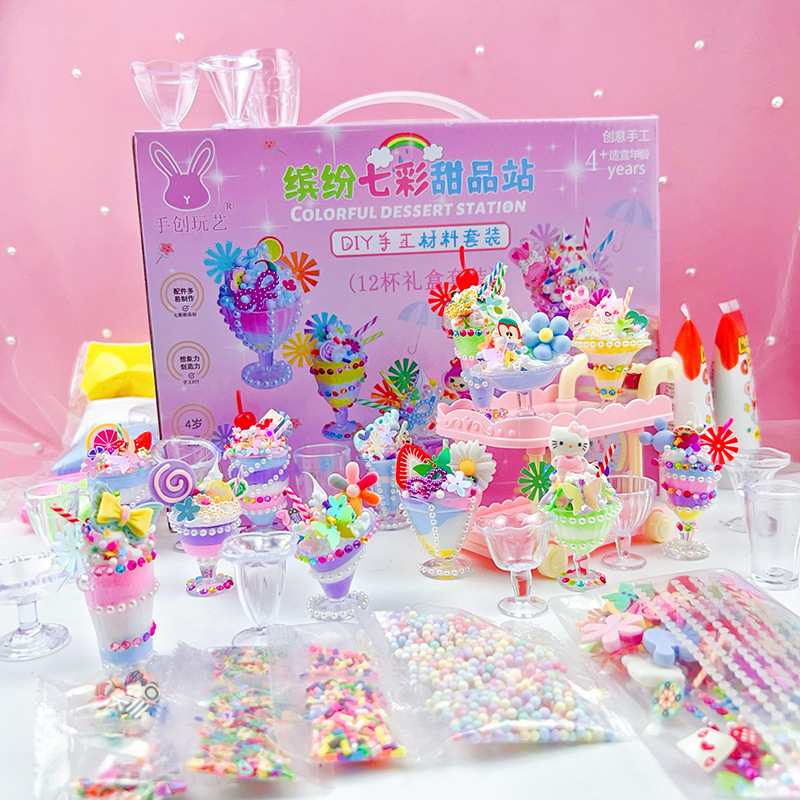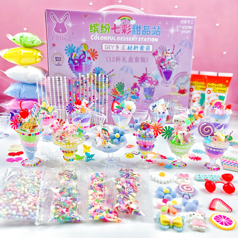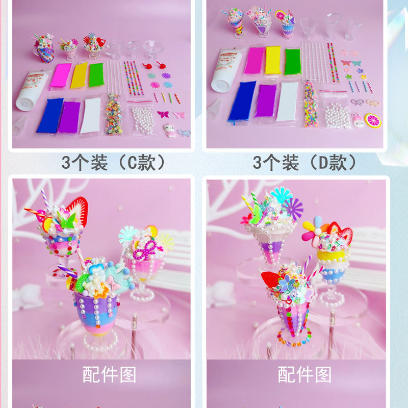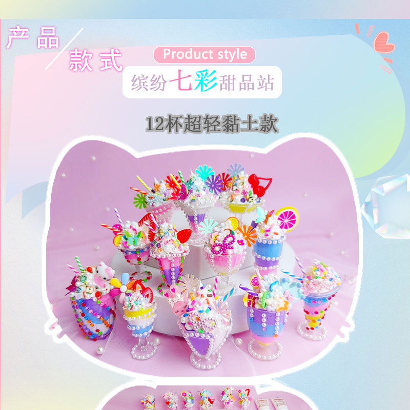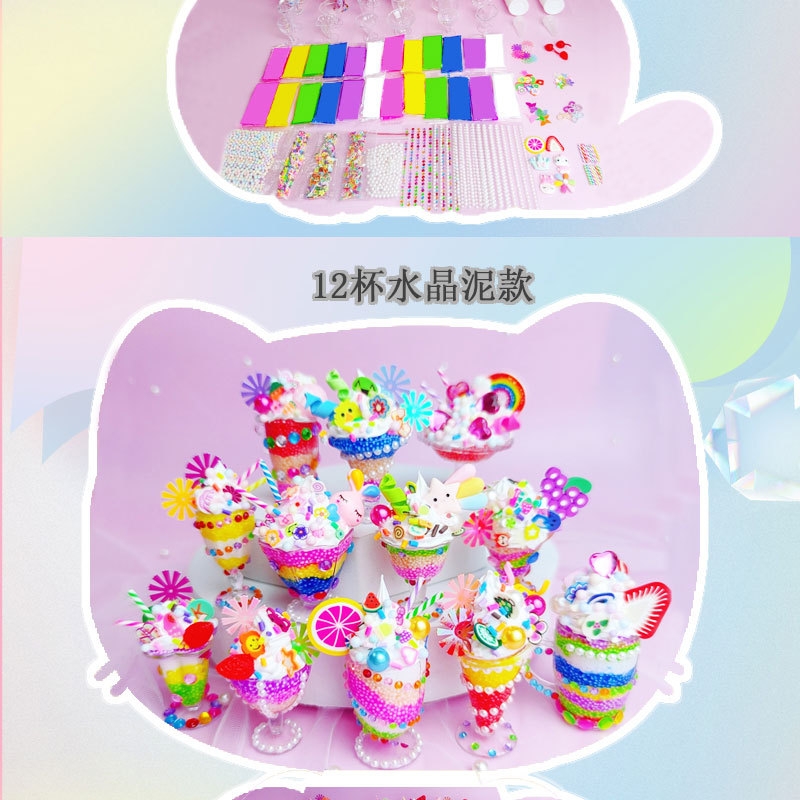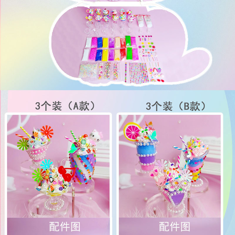 奶油冰淇淋儿童手工diy仿真彩色雪花泥制作材料包蛋糕甜品杯玩具