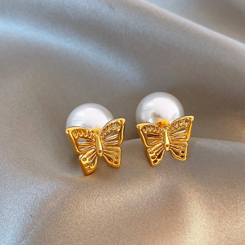 银针欧美金属风珍珠蝴蝶花朵流苏耳环时尚个性耳钉高级感耳饰批发