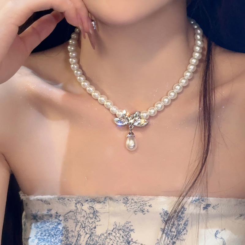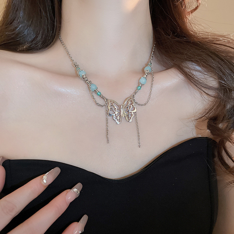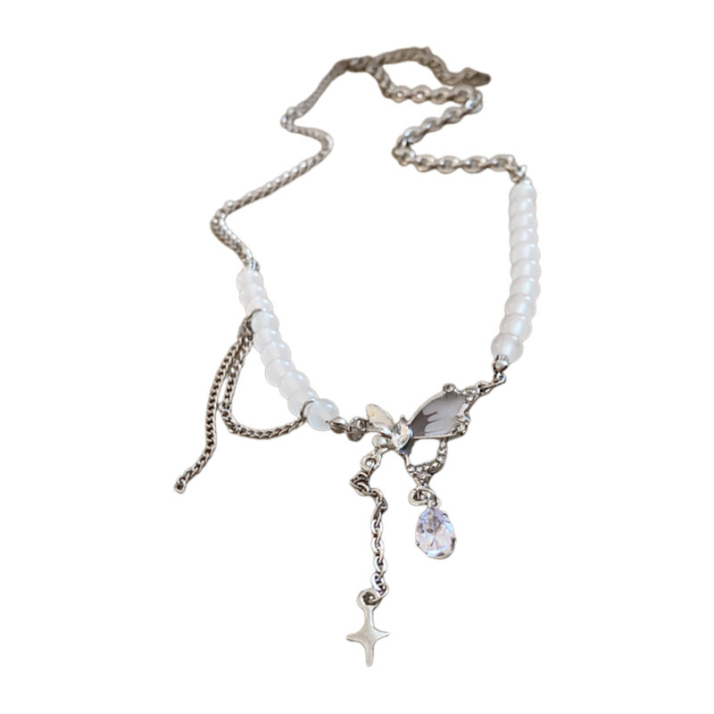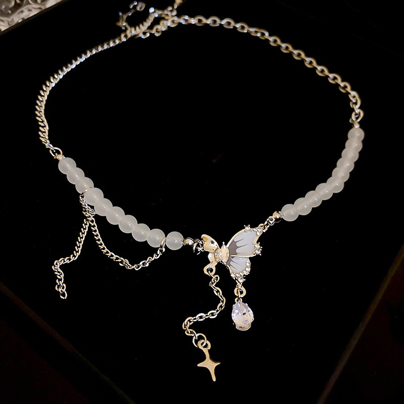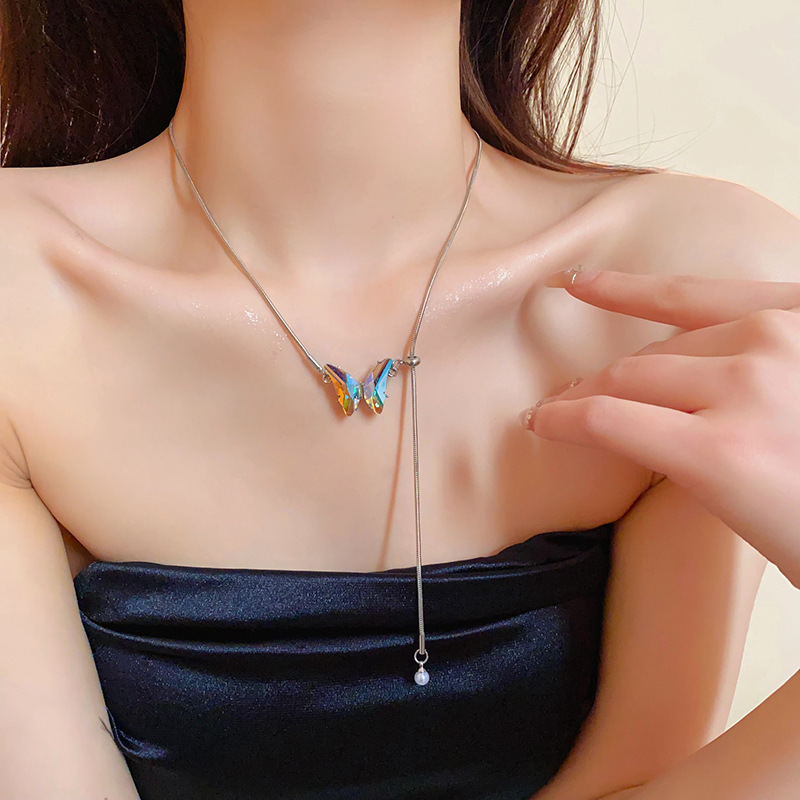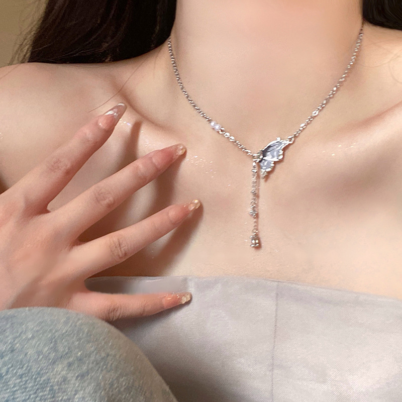 冷淡风镶钻蝴蝶流苏珍珠项链气质时尚锁骨链网红高级感项饰批发女