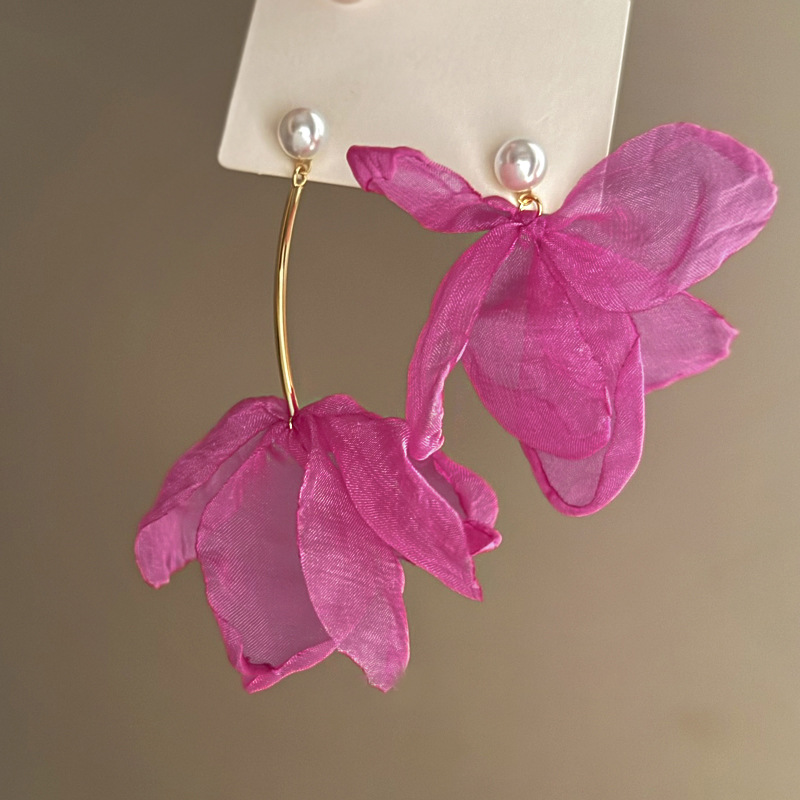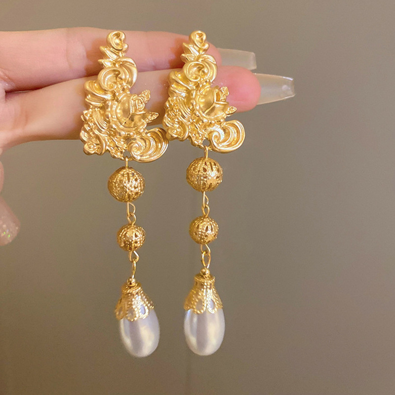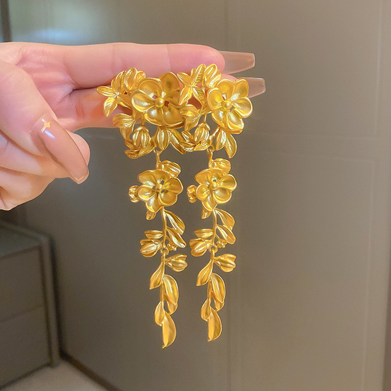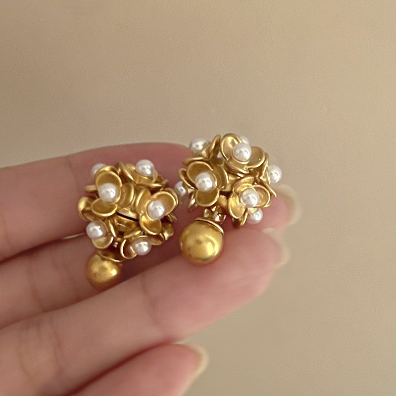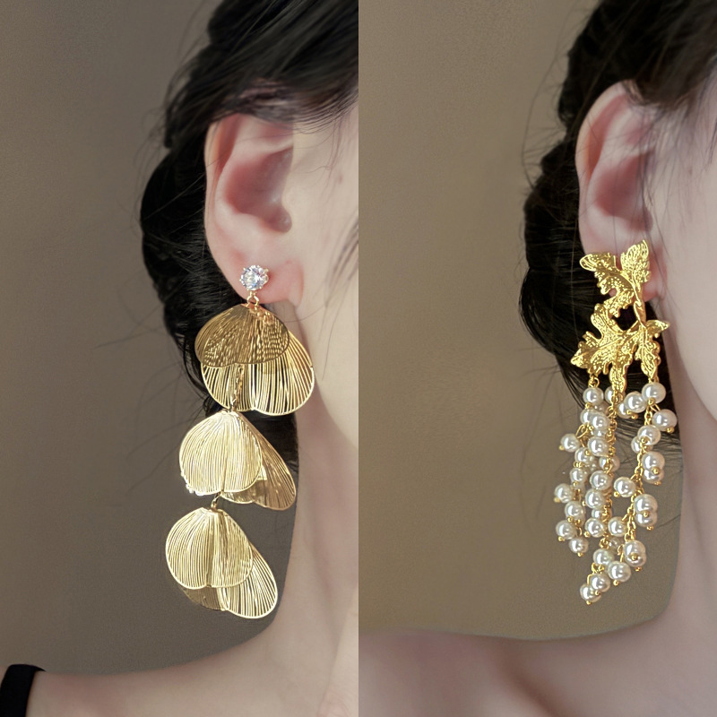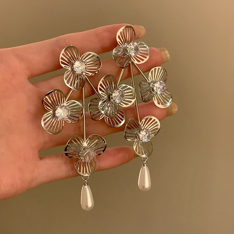 银针欧美跨境专供花朵珍珠流苏耳环气质个性耳钉夸张高级感耳饰女