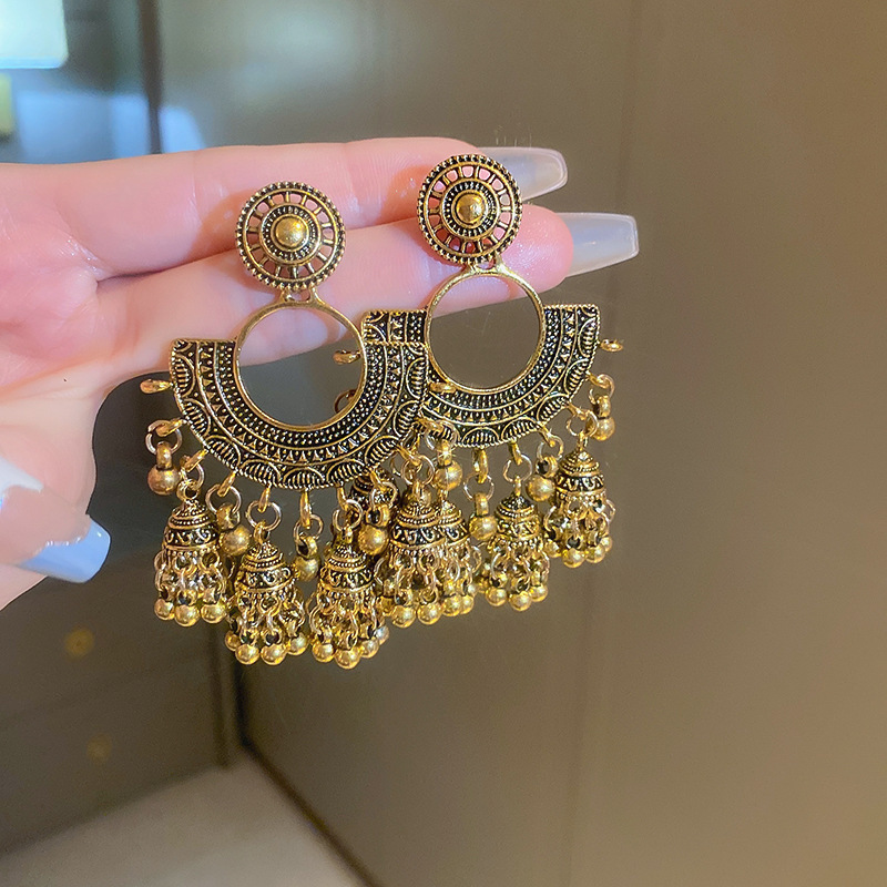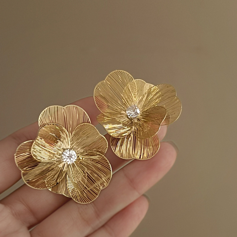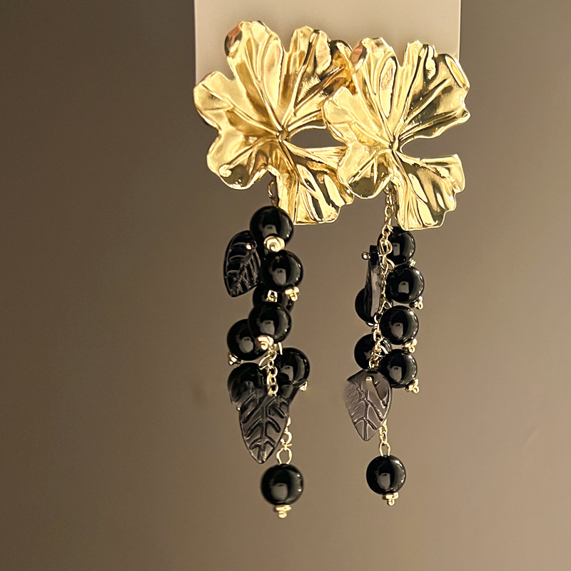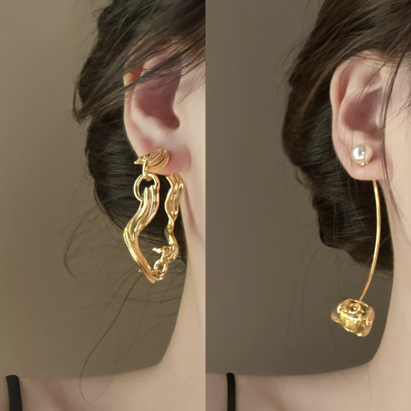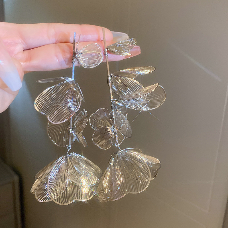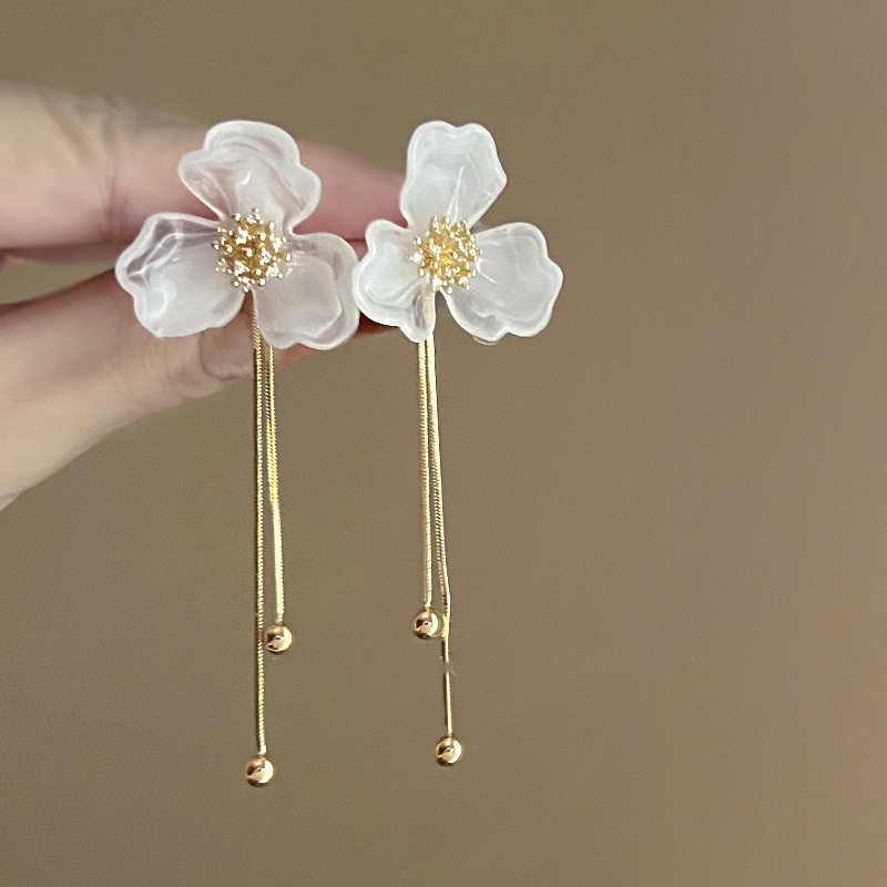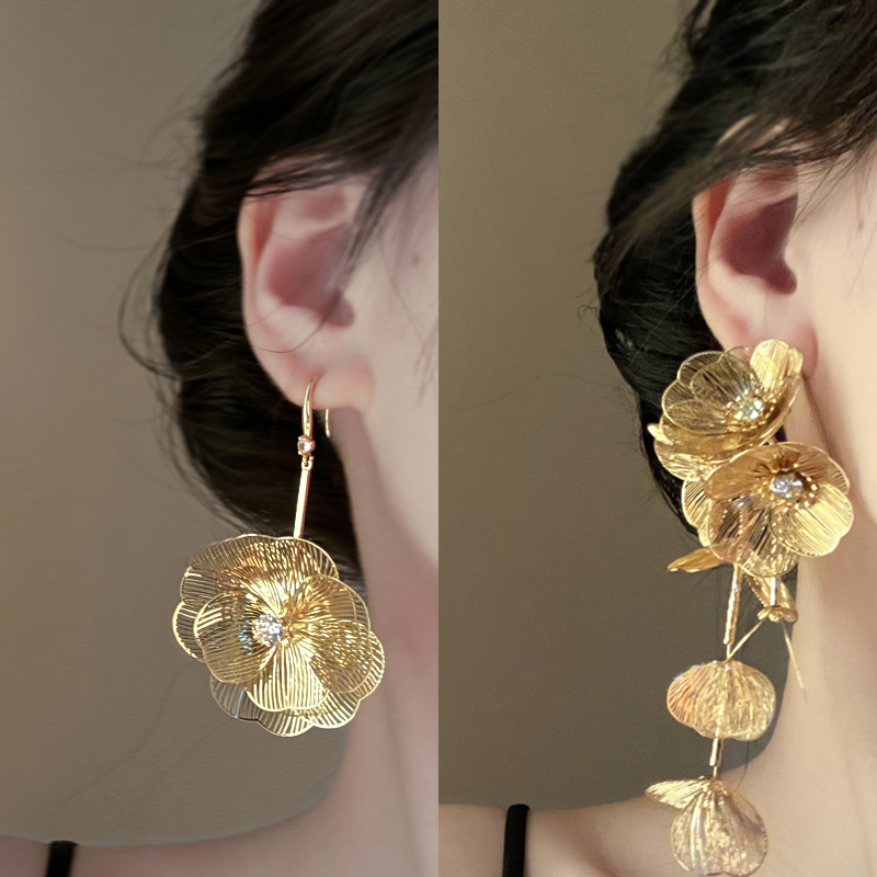 银针欧美跨境专供花朵珍珠流苏耳环气质个性耳钉夸张高级感耳饰女