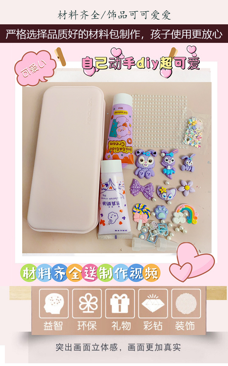 diy手工文具盒奶油胶制作材料包儿童益智玩具钻石粘贴小女孩礼物
