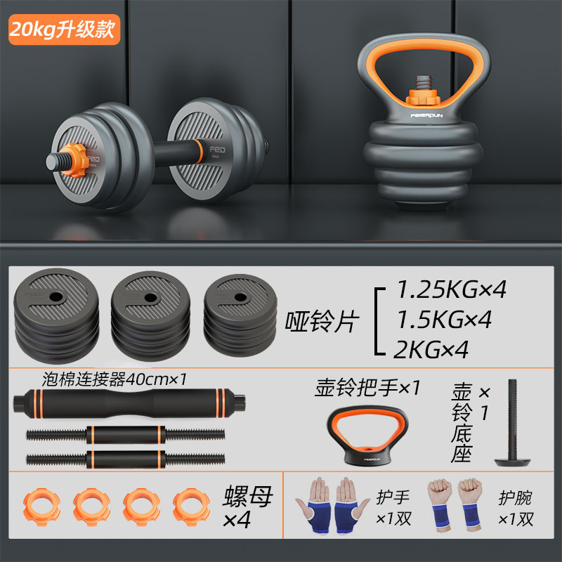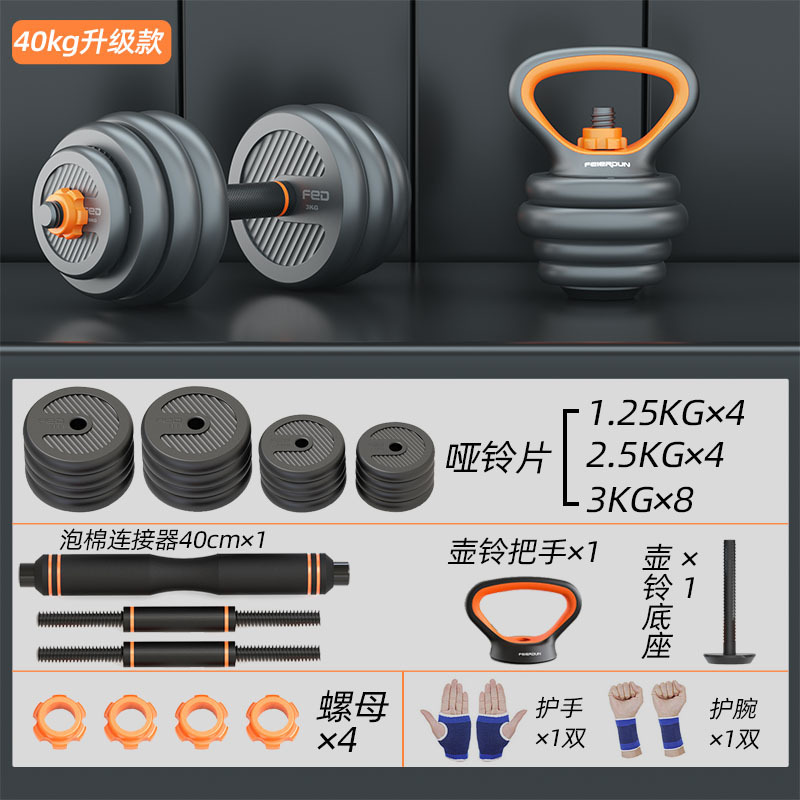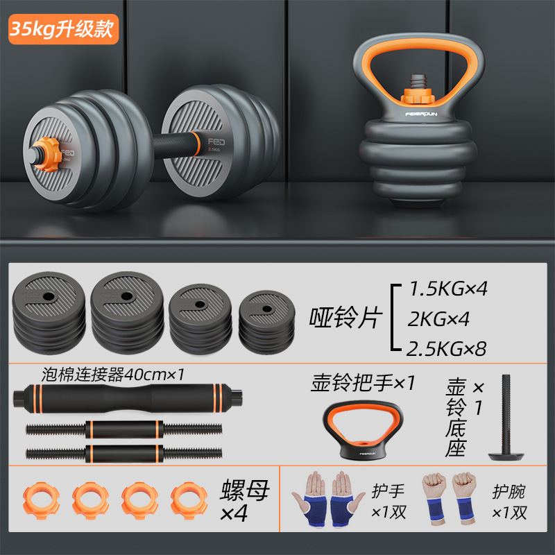 哑铃男士健身家用器材力量训练杠铃套装运动可调节重量壶铃哑铃架