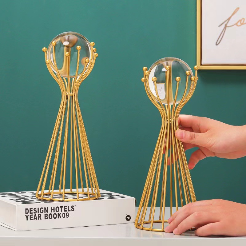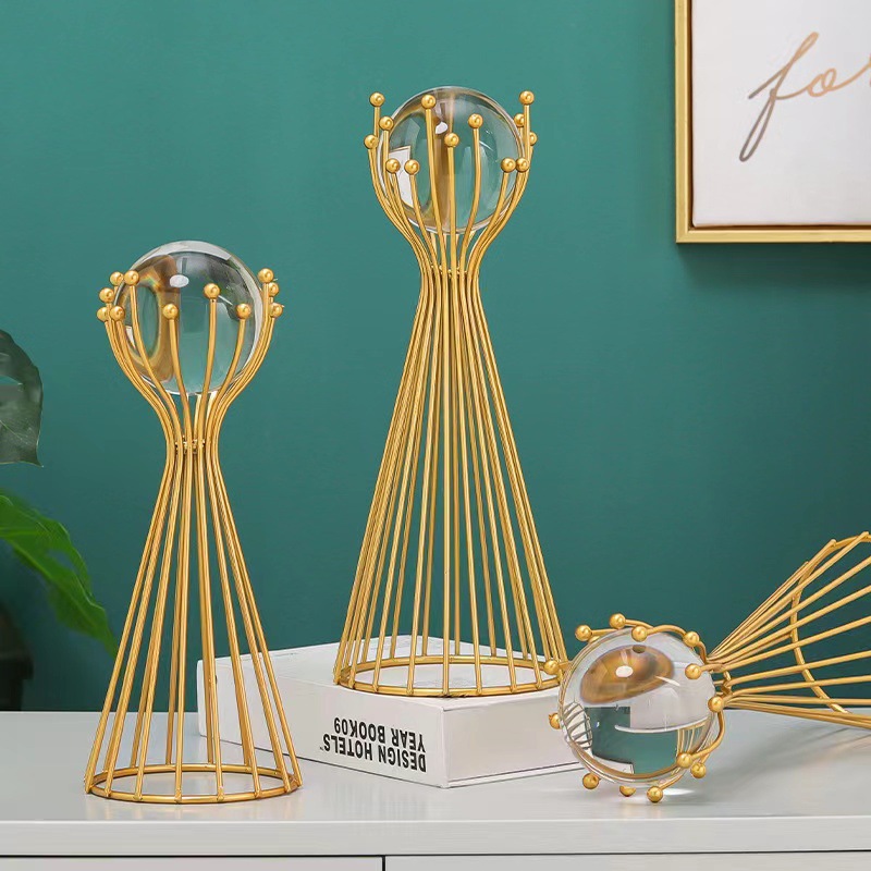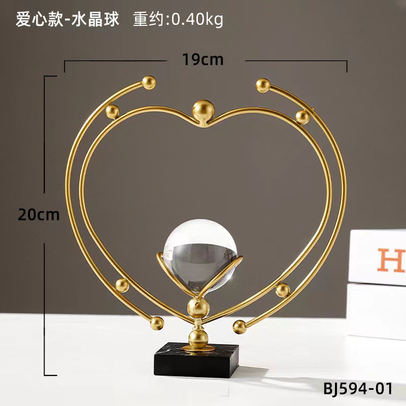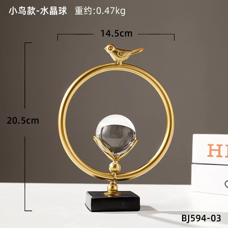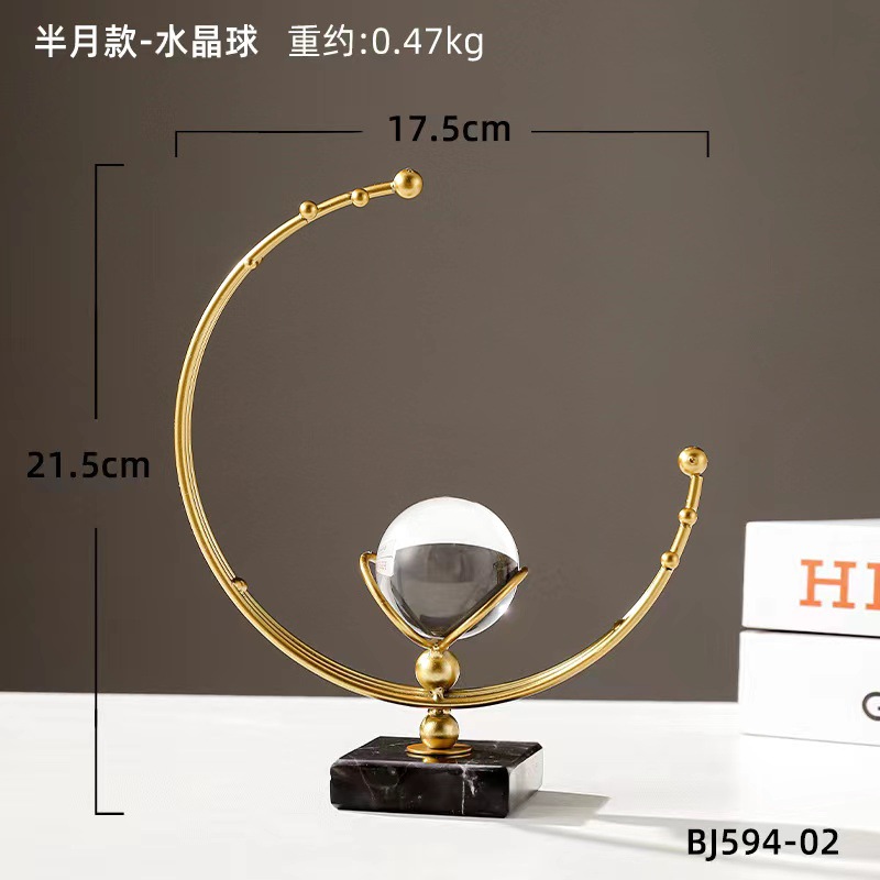 批发欧式轻奢风金属水晶球摆件创意家居客厅办公室桌面装饰工艺品