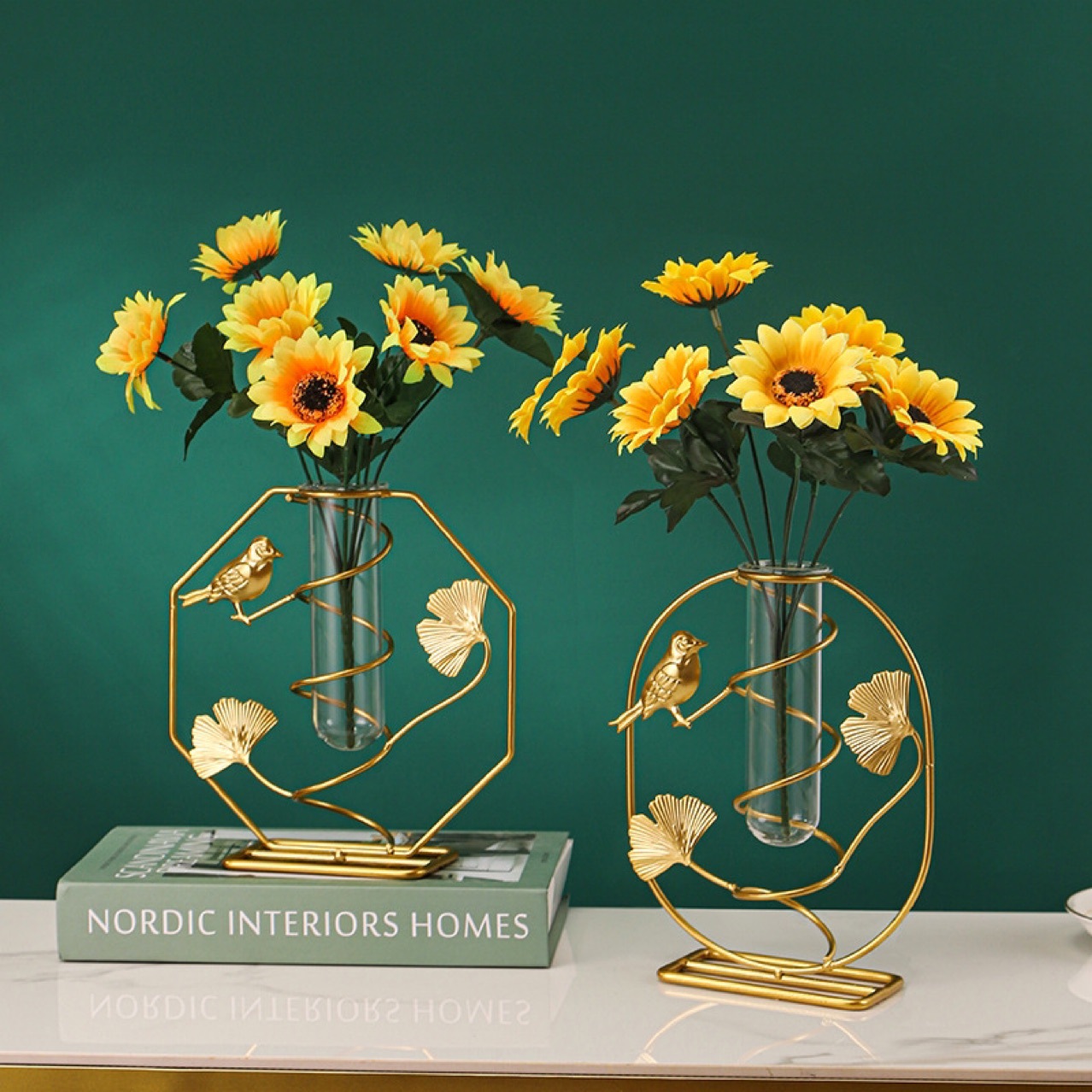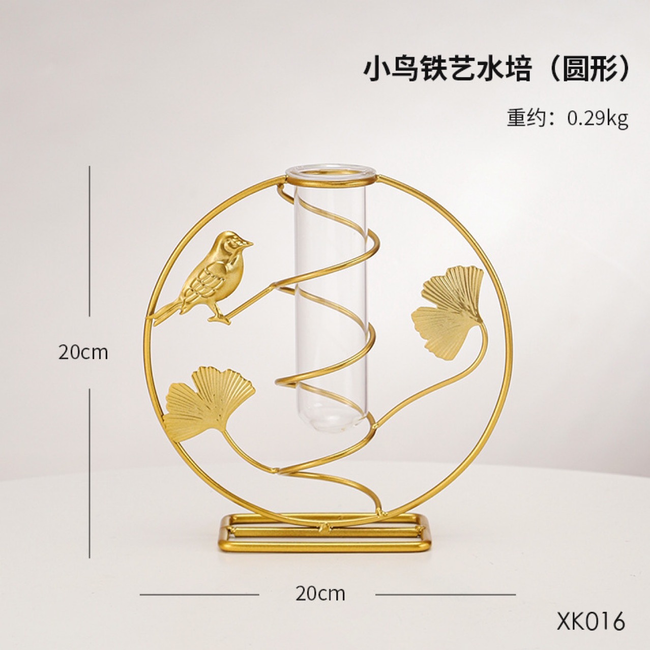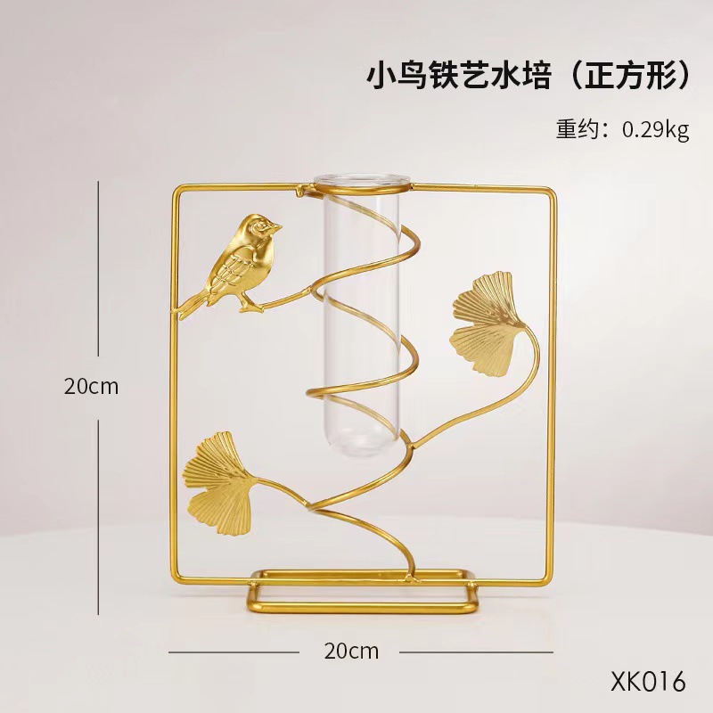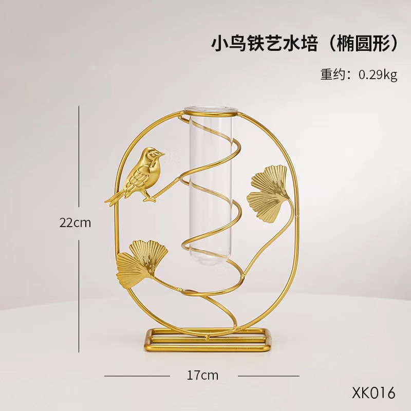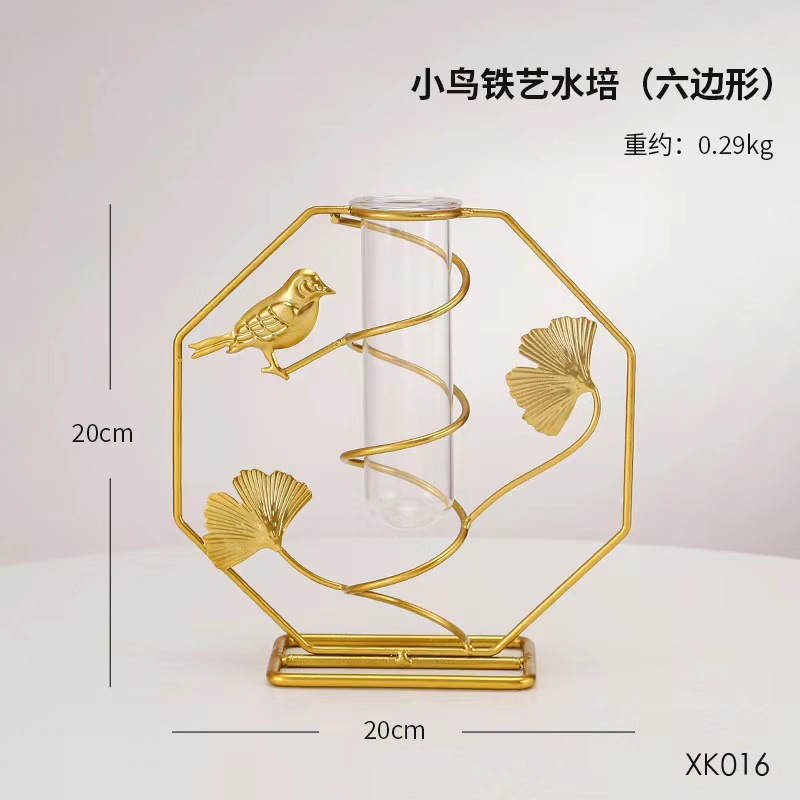 北欧ins金色银杏叶绿萝铁艺水培 客厅书房办公桌面装饰花瓶摆件