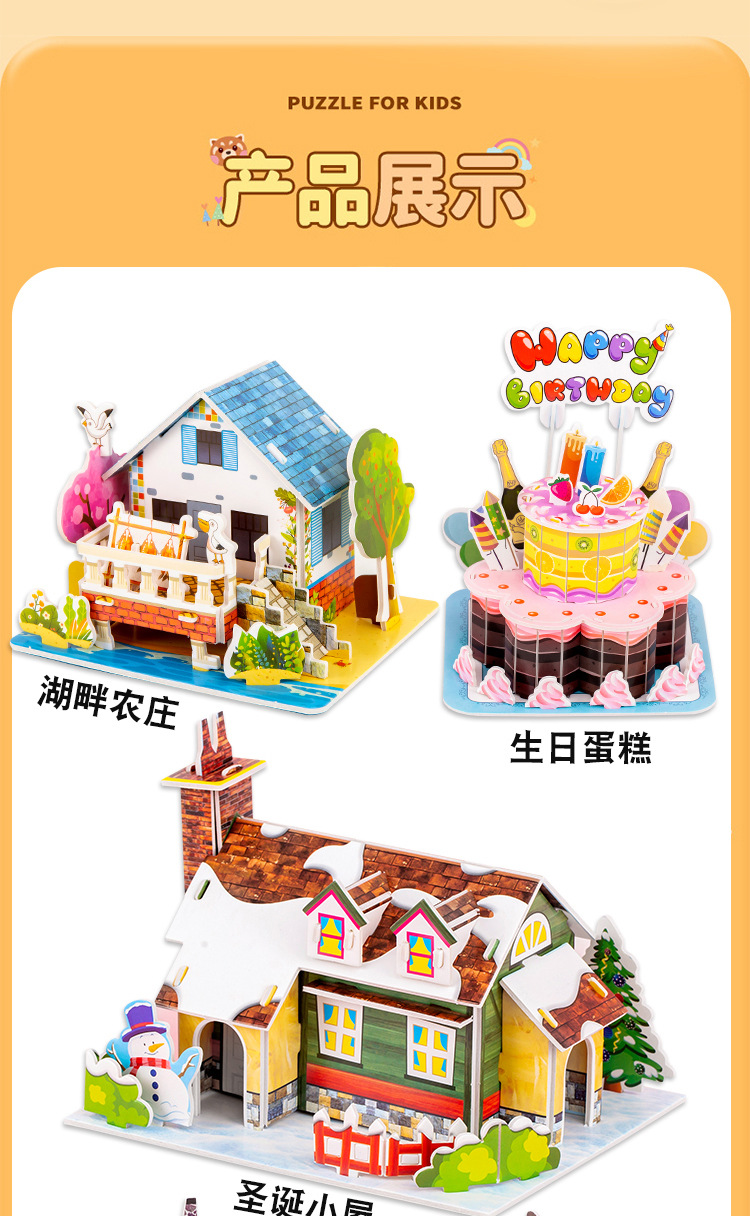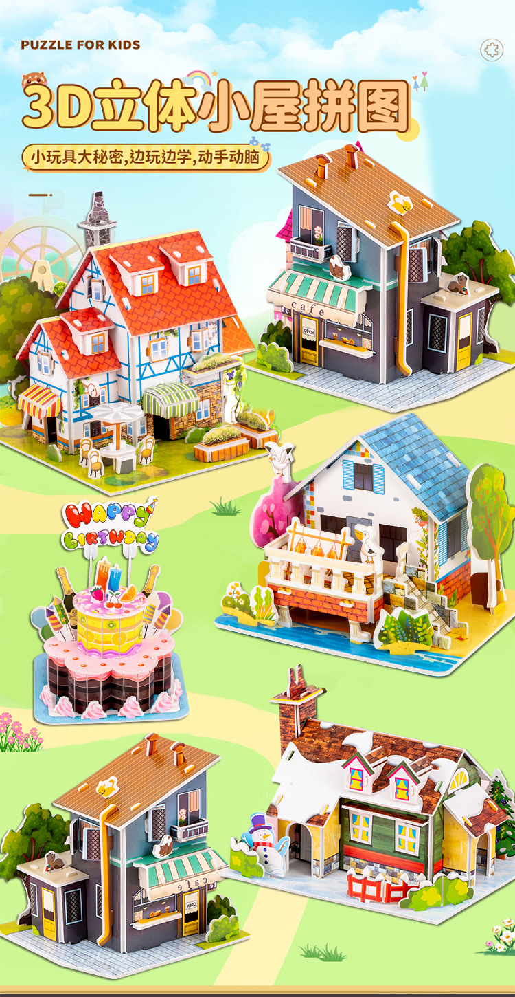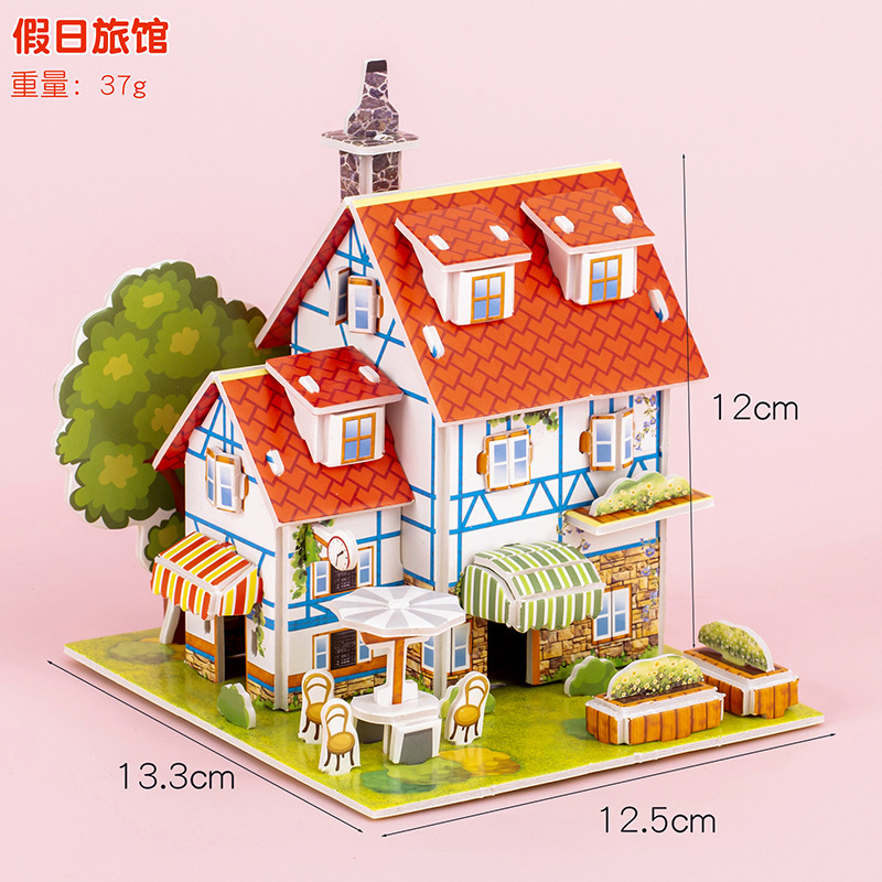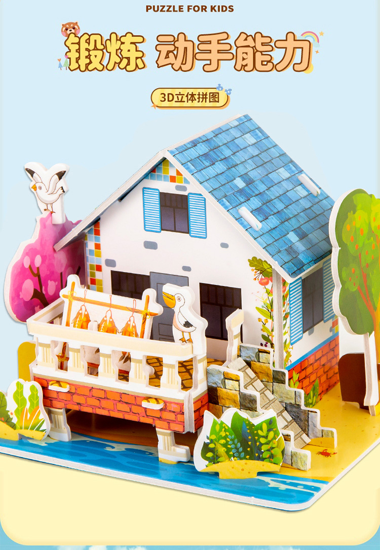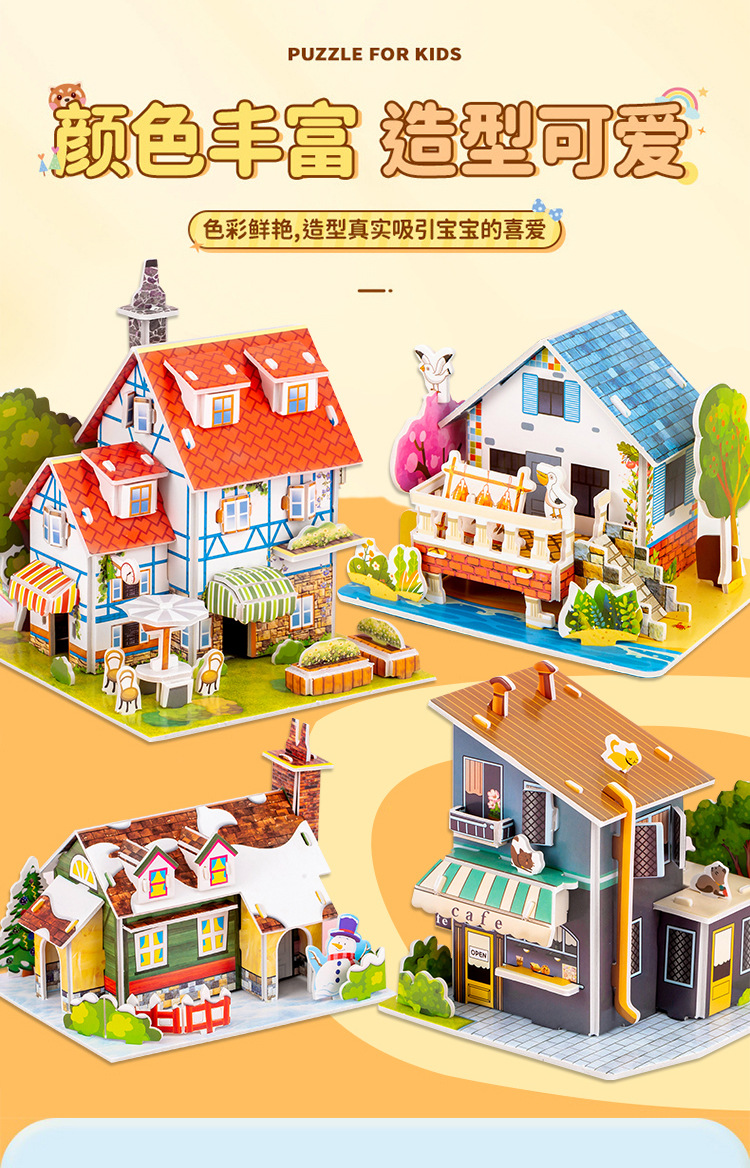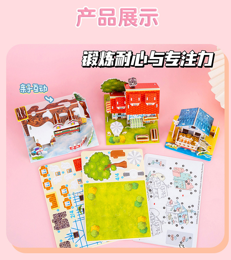 儿童节幼儿园礼品益智卡手工纸质3D立体拼图玩具飞船城堡别墅模型