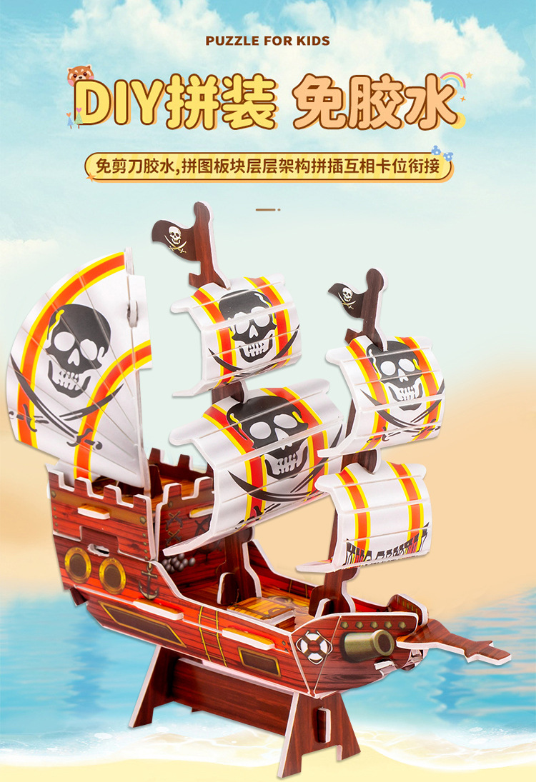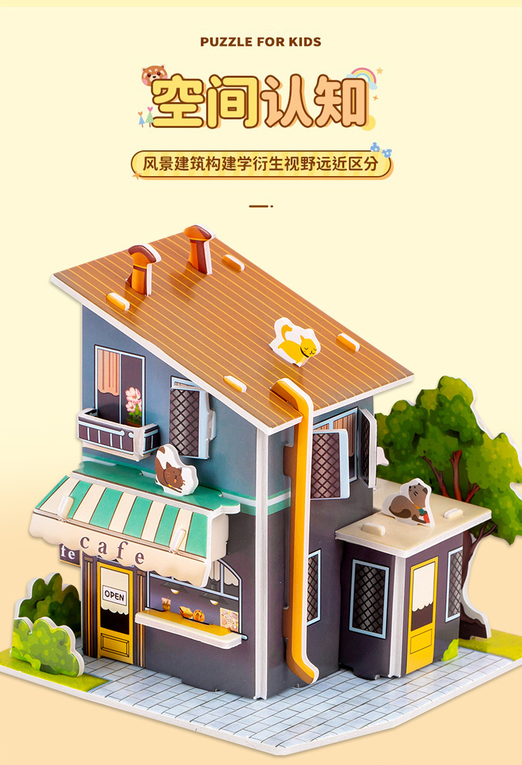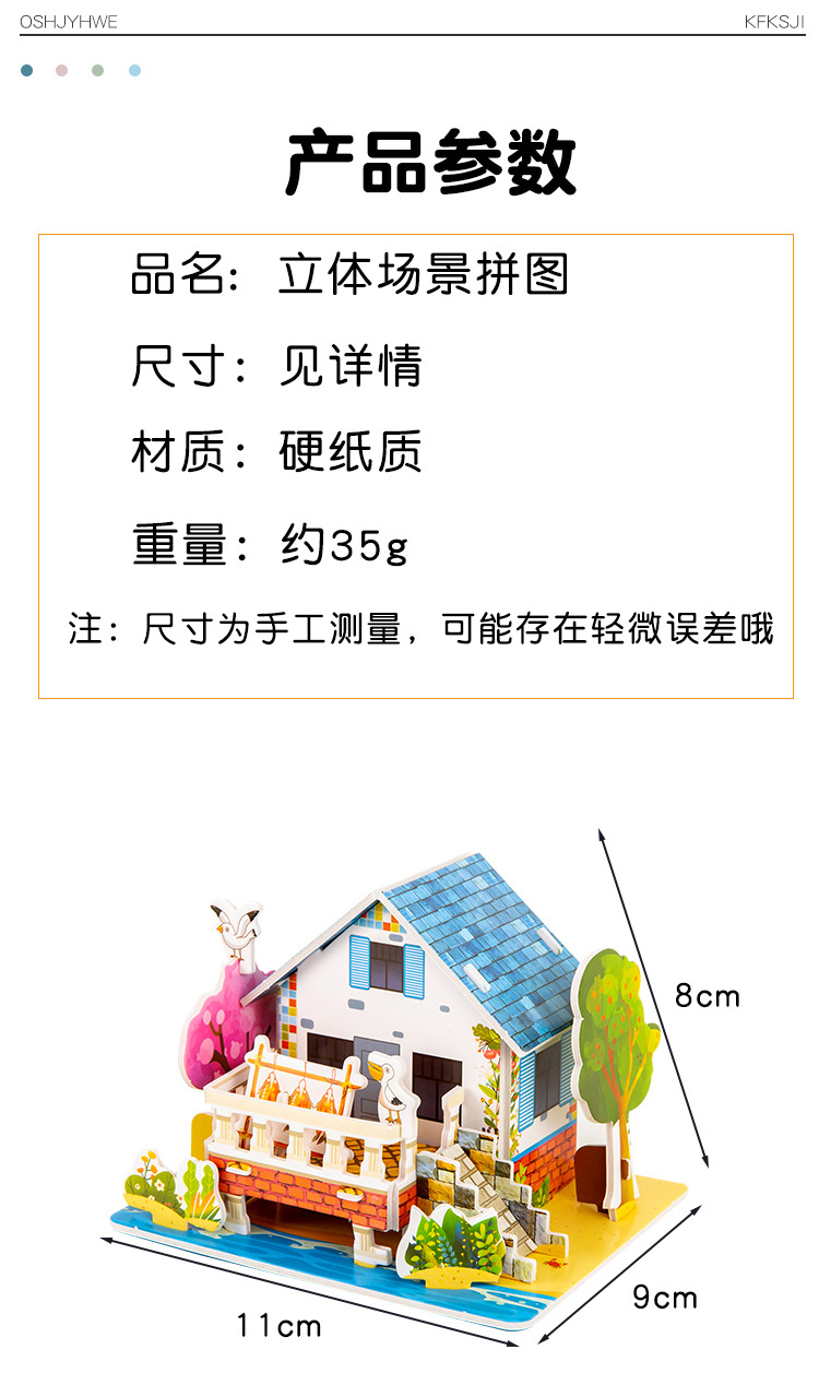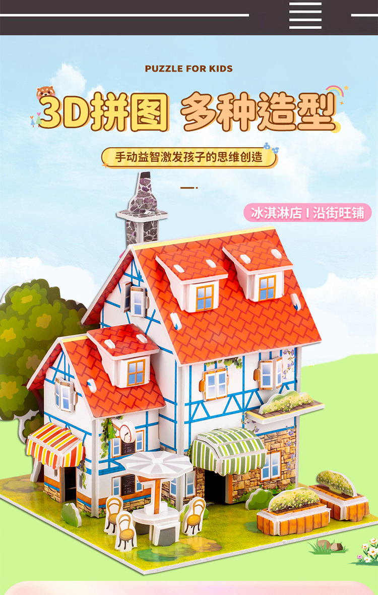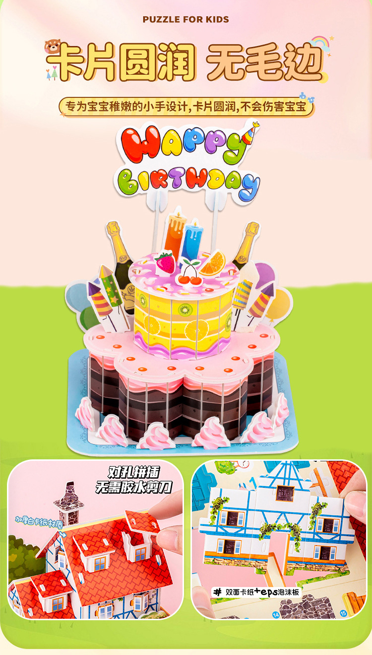 儿童节幼儿园礼品益智卡手工纸质3D立体拼图玩具飞船城堡别墅模型