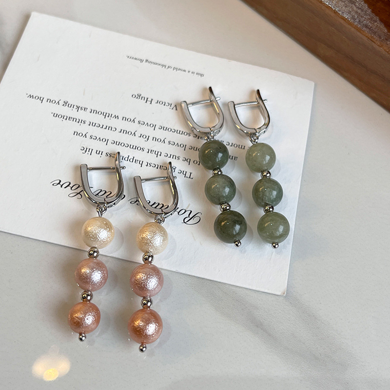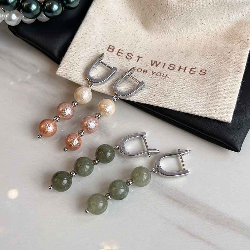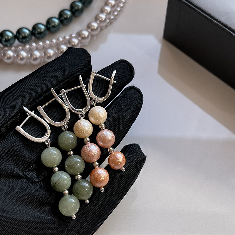 饰品小众高级感真金电镀耳钉耳饰新中式复古天然石长款流苏耳环女