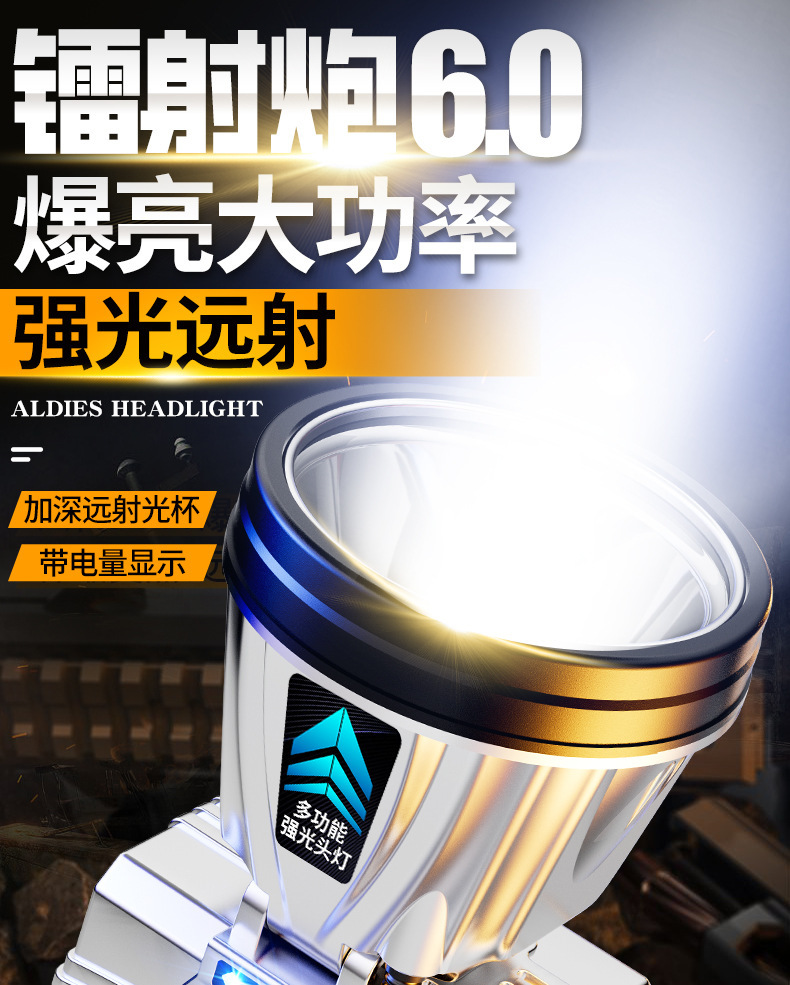跨境爆款长续航强光头灯LED头戴式充电夜钓矿灯户外露营探照电筒