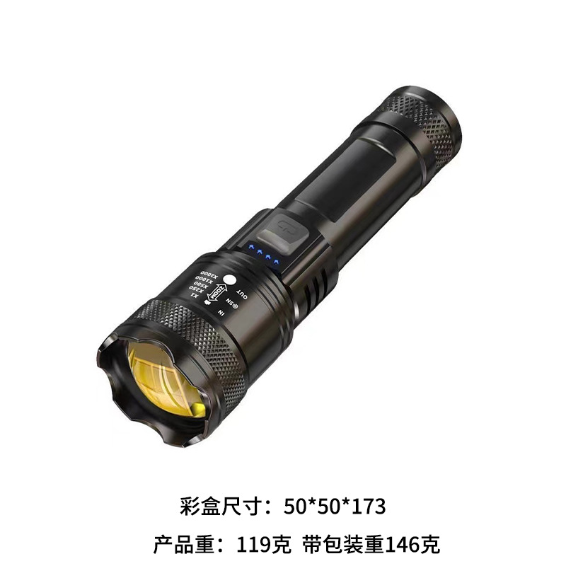 强光手电 跨境户外LED便携十万流明变焦充电长续航迷你小手电筒