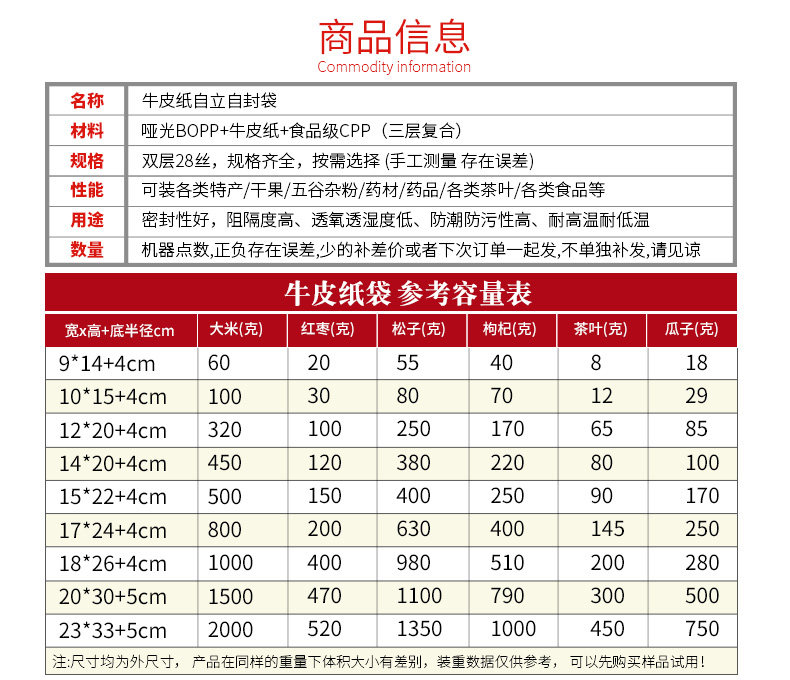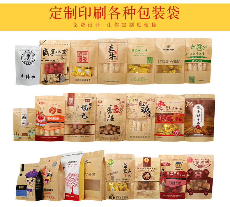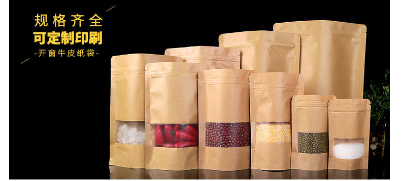 牛皮纸自封袋茶叶袋开窗袋包装袋磨砂牛皮纸自立食品坚果类密封袋