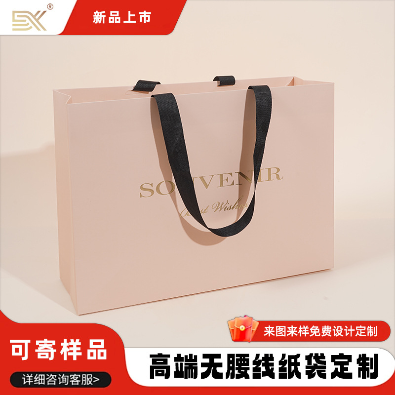 无腰线高档手提纸袋化妆品茶叶服饰白卡礼物包装企业宣传定制logo