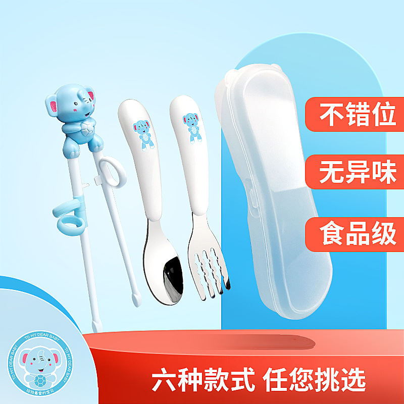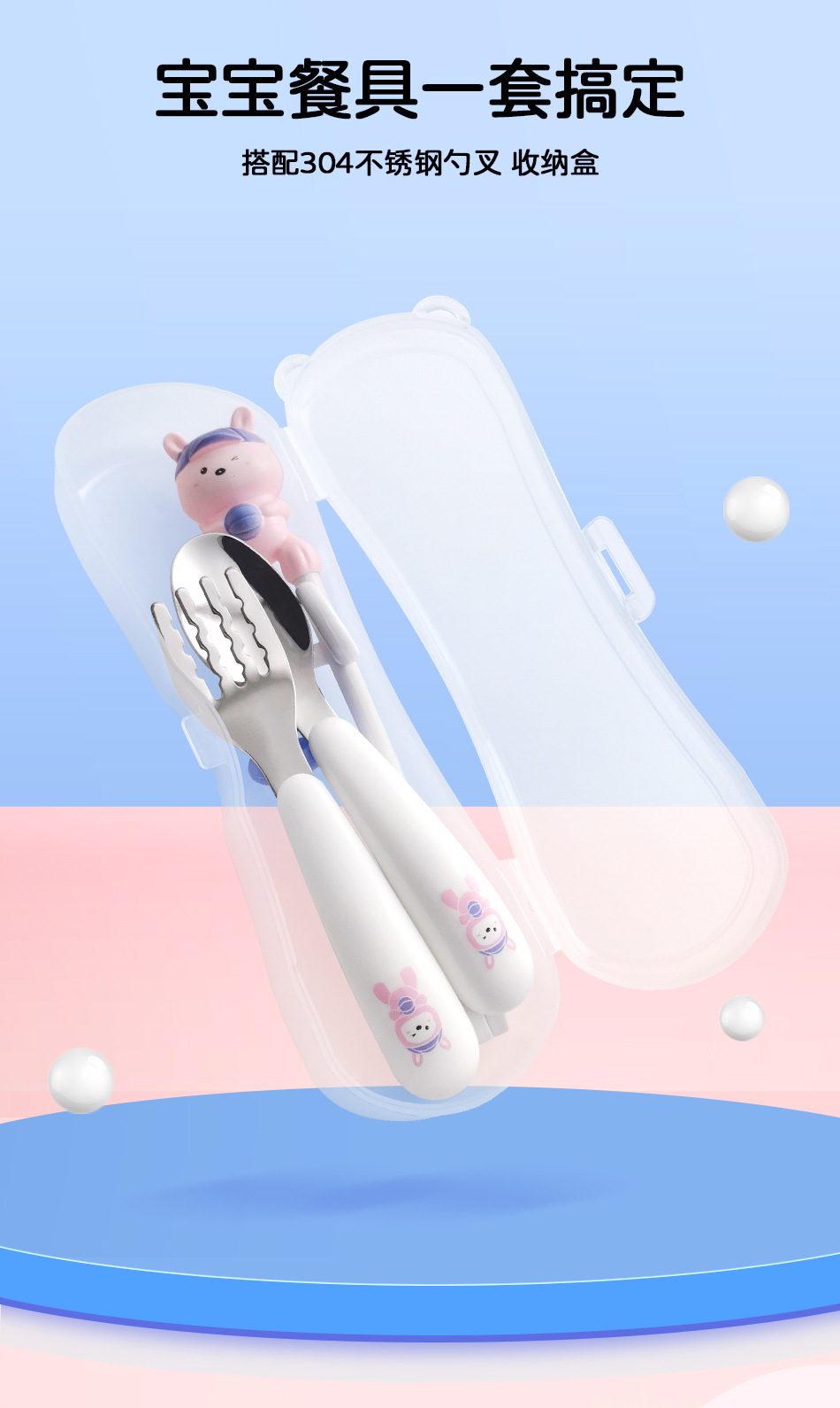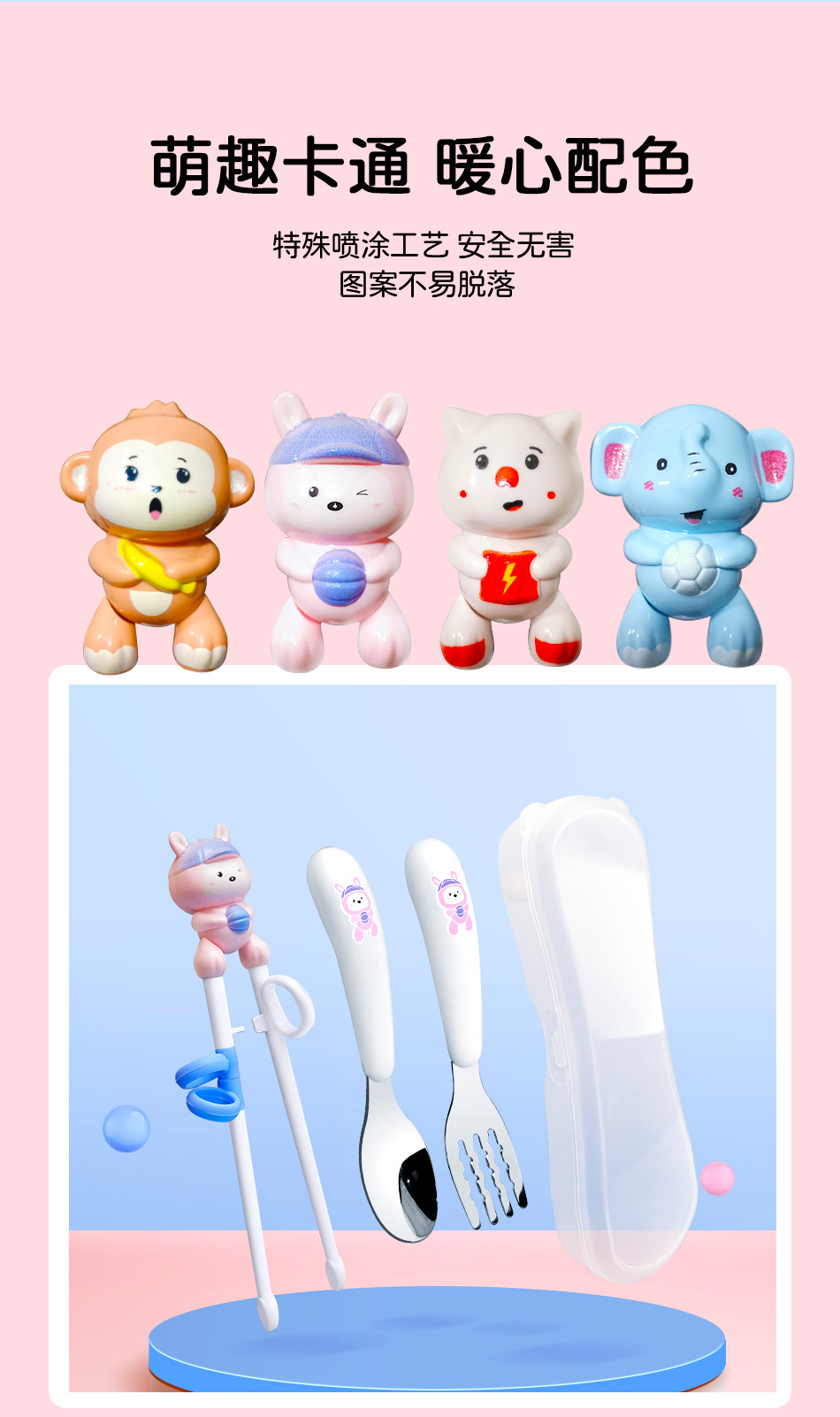 儿童筷便携餐具套装学习训练筷304不锈钢勺叉辅食餐具厂家批发