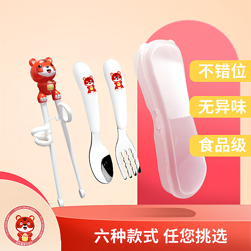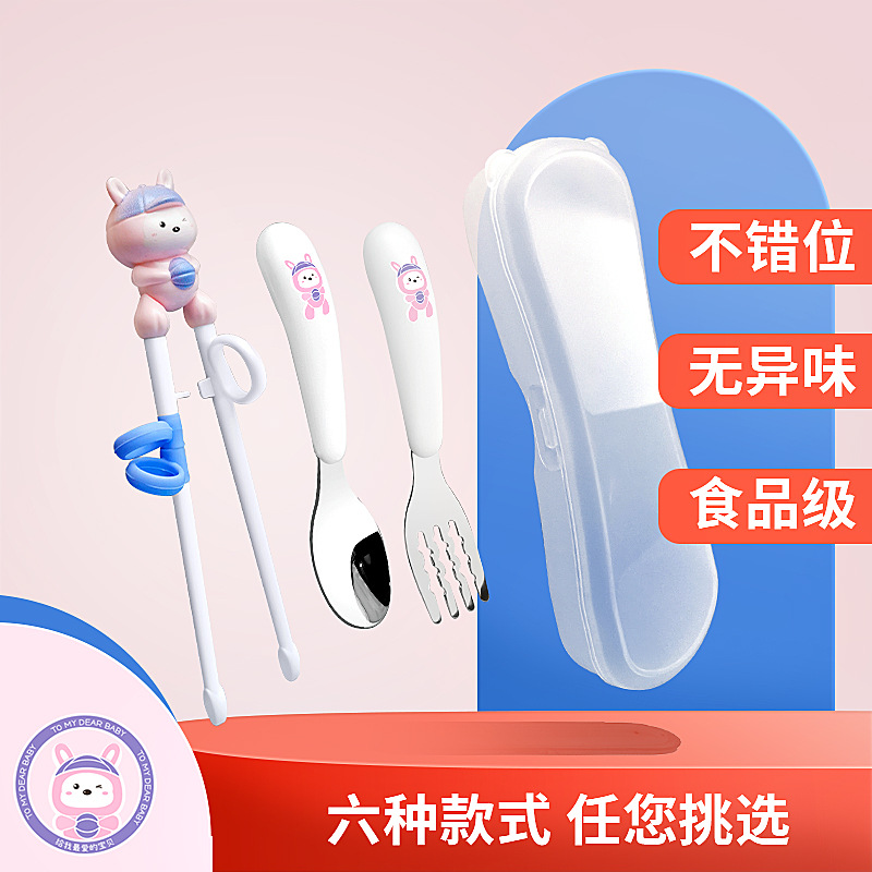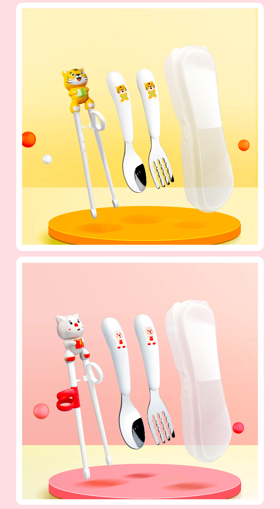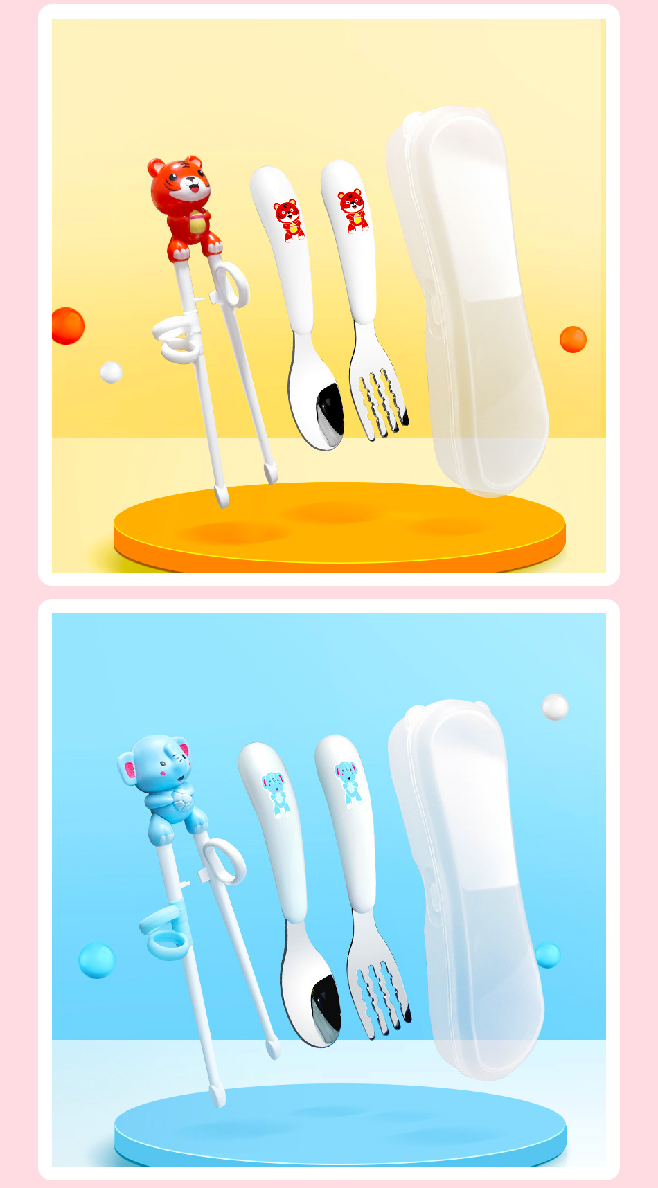 儿童筷便携餐具套装学习训练筷304不锈钢勺叉辅食餐具厂家批发