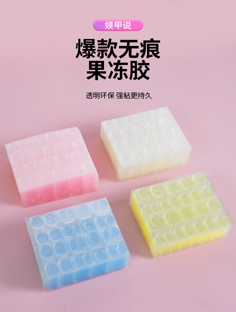 果冻美甲贴加大厚款防水极粘牢固隐形双面贴加大款果冻胶黄胶24粒