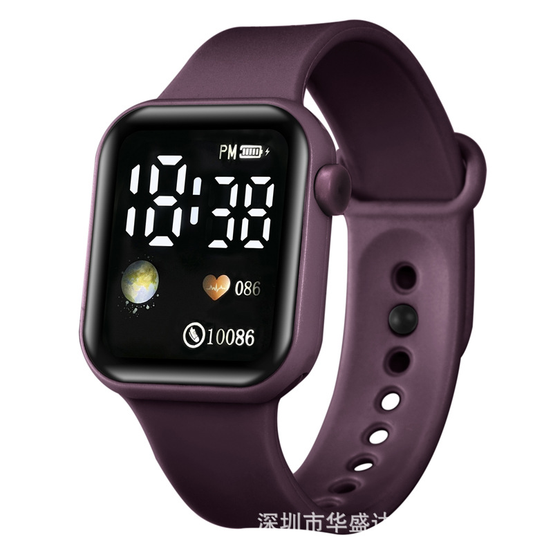 新款跨境小方块地球爱心情侣儿童手表运动LED电子手表地球