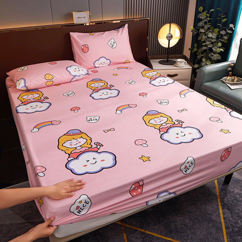 磨毛印花床床单笠单件床罩席梦思保护套卡通床套纯白色布防滑防尘